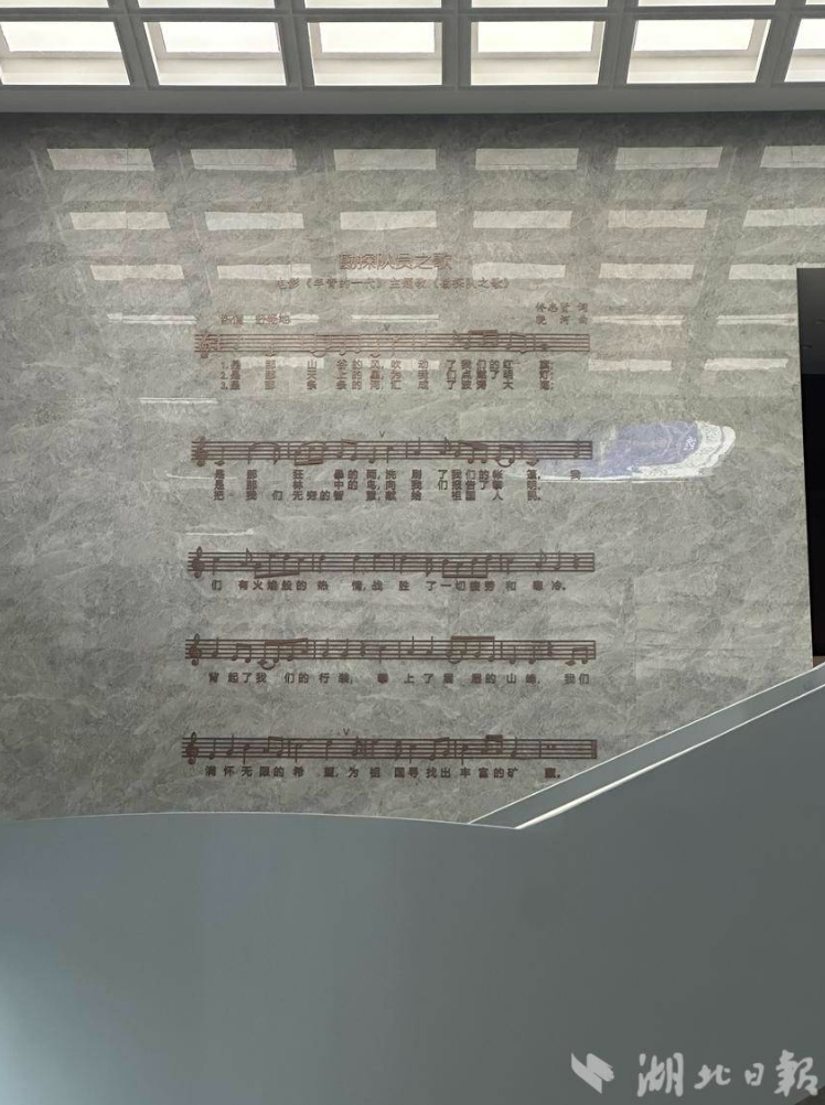 地大校史馆中央大厅中的校歌。(湖北日报全媒记者 田佩雯 摄)