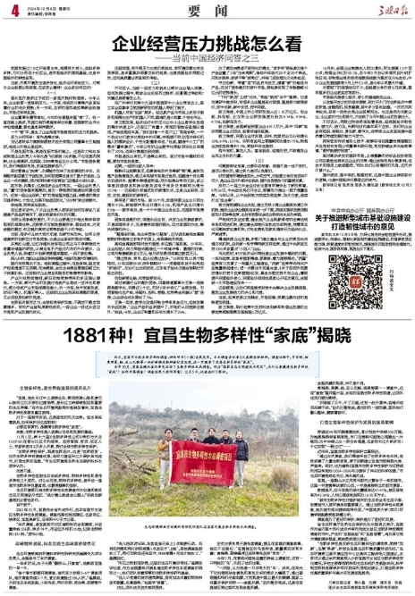 “生物多样性保护,既是世界名片,也是‘世界语言’。此次生物多样性调查成果,将助力建设长江大保护典范城市,打造世界级宜昌。”市生态环境局自然生态保护科科长屈华认为。