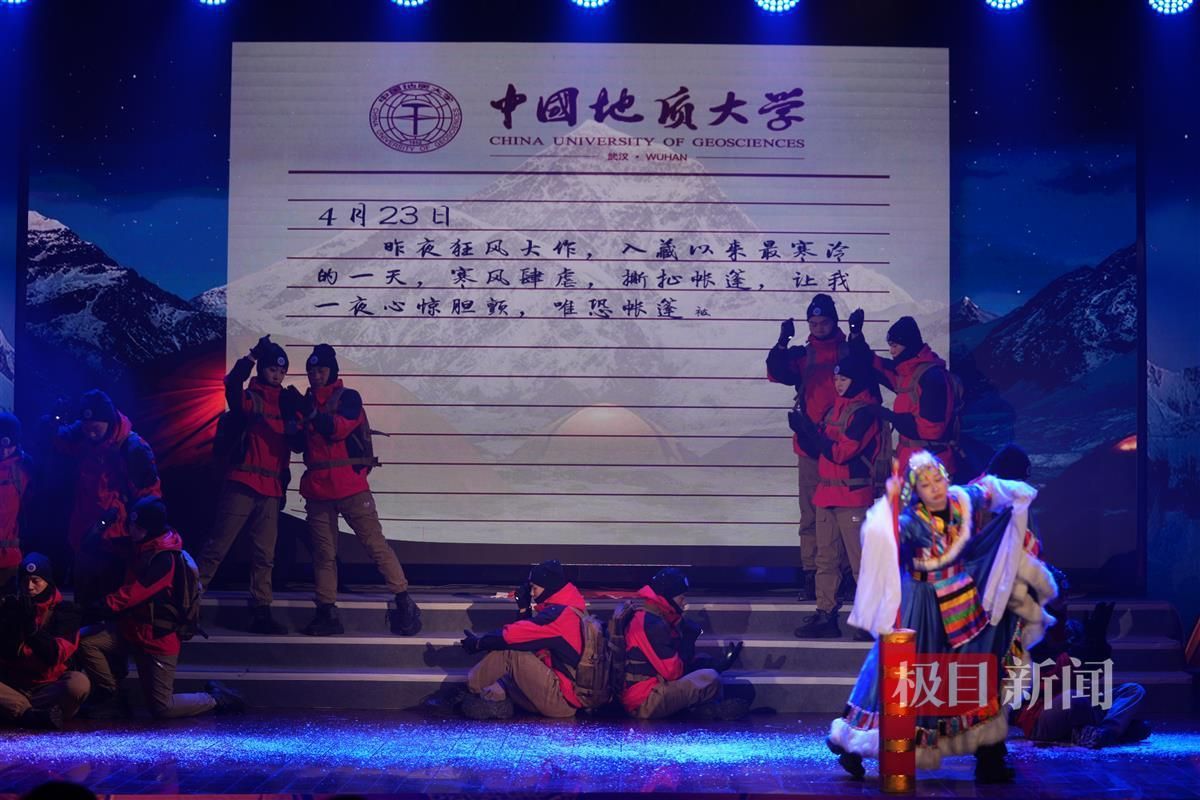 “太激动了,最后‘登顶珠峰’的那一刻,我深切体会到了我们地大人向上攀登的精神。”陈晨的扮演者、地大艺术与传媒学院大二学生张阿雪说。为了演好这个角色,她反复揣摩陈晨的心理世界,“她勇于面对极限的精神深深打动了我。”