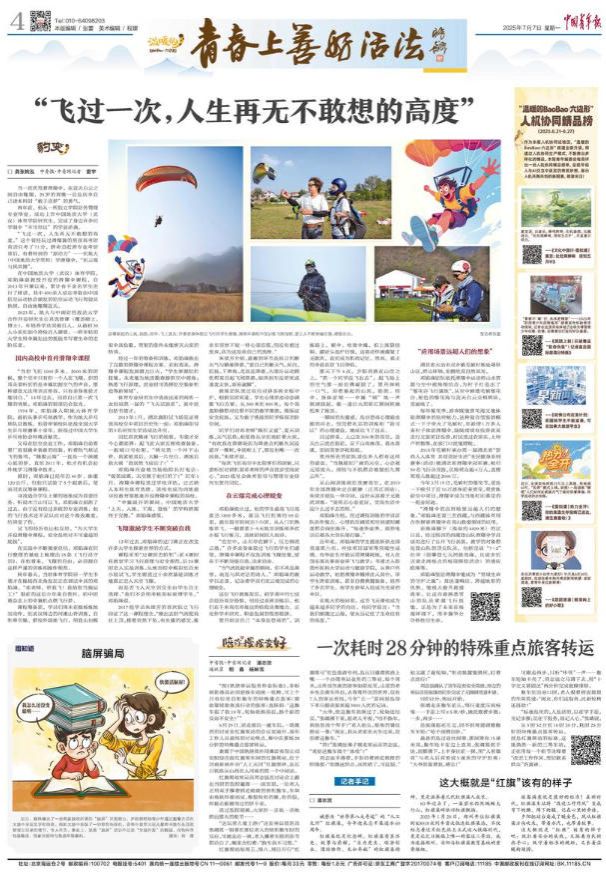 从山间训练场到竞赛高空,在2019年全国滑翔伞定点联赛(江苏江阴站),朱续芳更是一举夺冠,这份从容源于无数次训练:“受伤后心态更好,觉得生活中没什么过不去的坎。”
