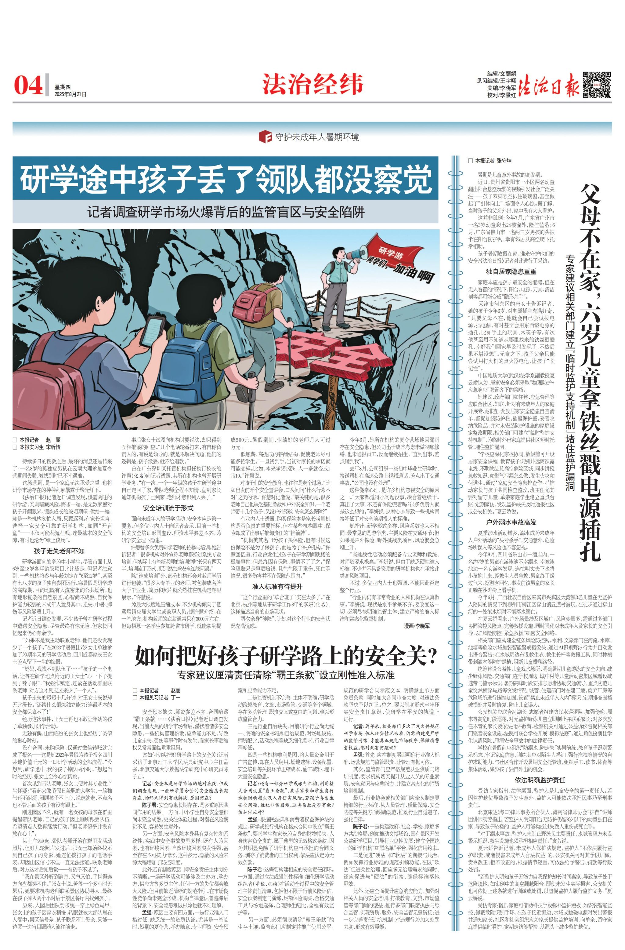 孩子暑期放假在家,谁来守护他们的安全?《法治日报》记者对此进行了采访。