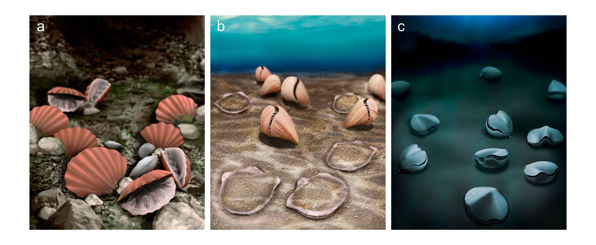 图4 中—新生代部分腕足动物生态恢复图。石顺义绘制