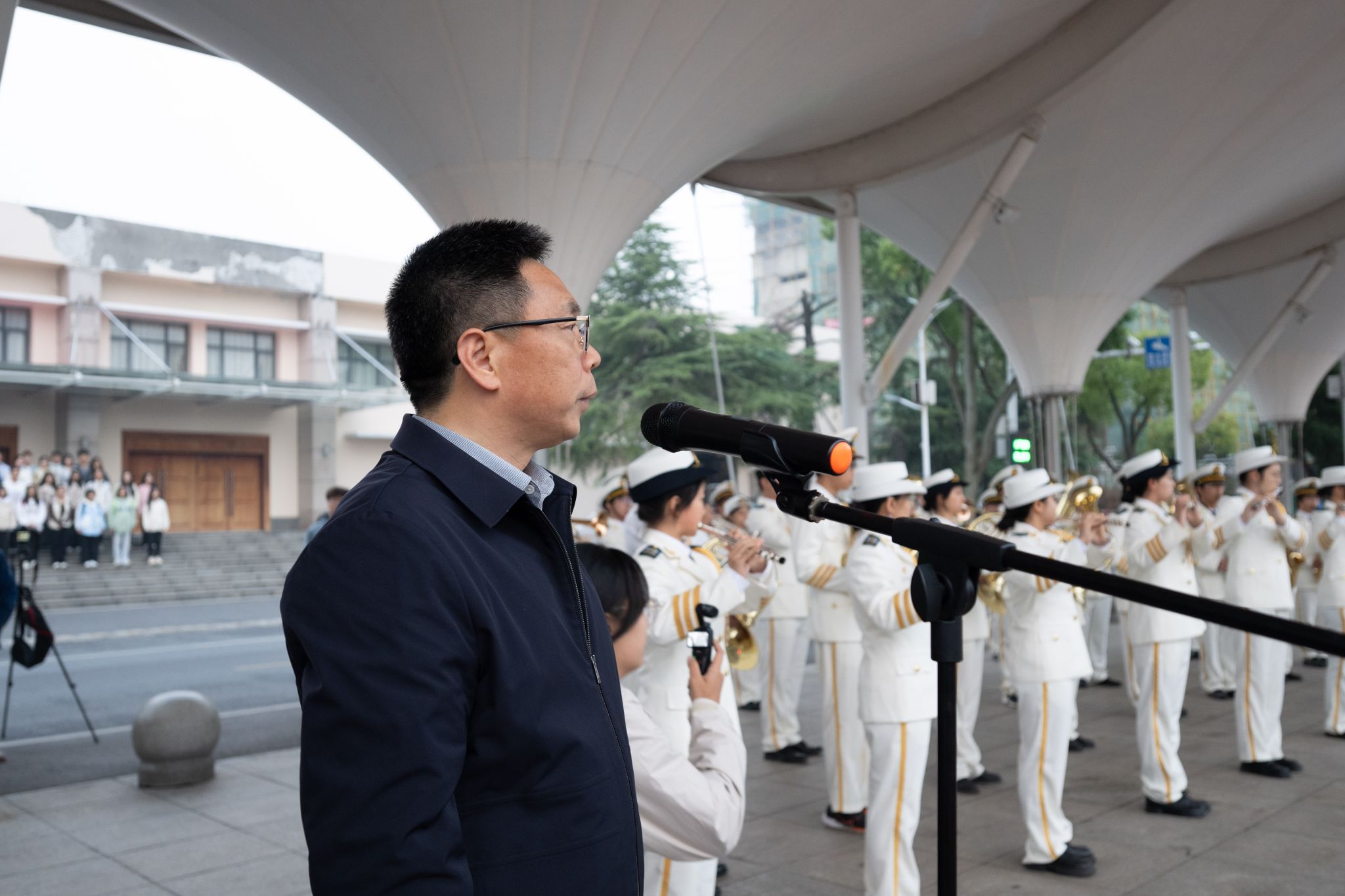 学校高度重视学生早锻炼,校党委副书记王甫现场观摩早锻炼并主持本学期第一次升旗仪式。自10月10日早锻炼启动以来,本科生院、党委宣传部、校团委等职能部门和广播台、场地管理中心、国旗班、军乐团等学生组织通力合作,有力保障早锻炼顺利进行。各学院领导班子、辅导员老师积极出勤,陪伴学生成长、关爱学生发展。