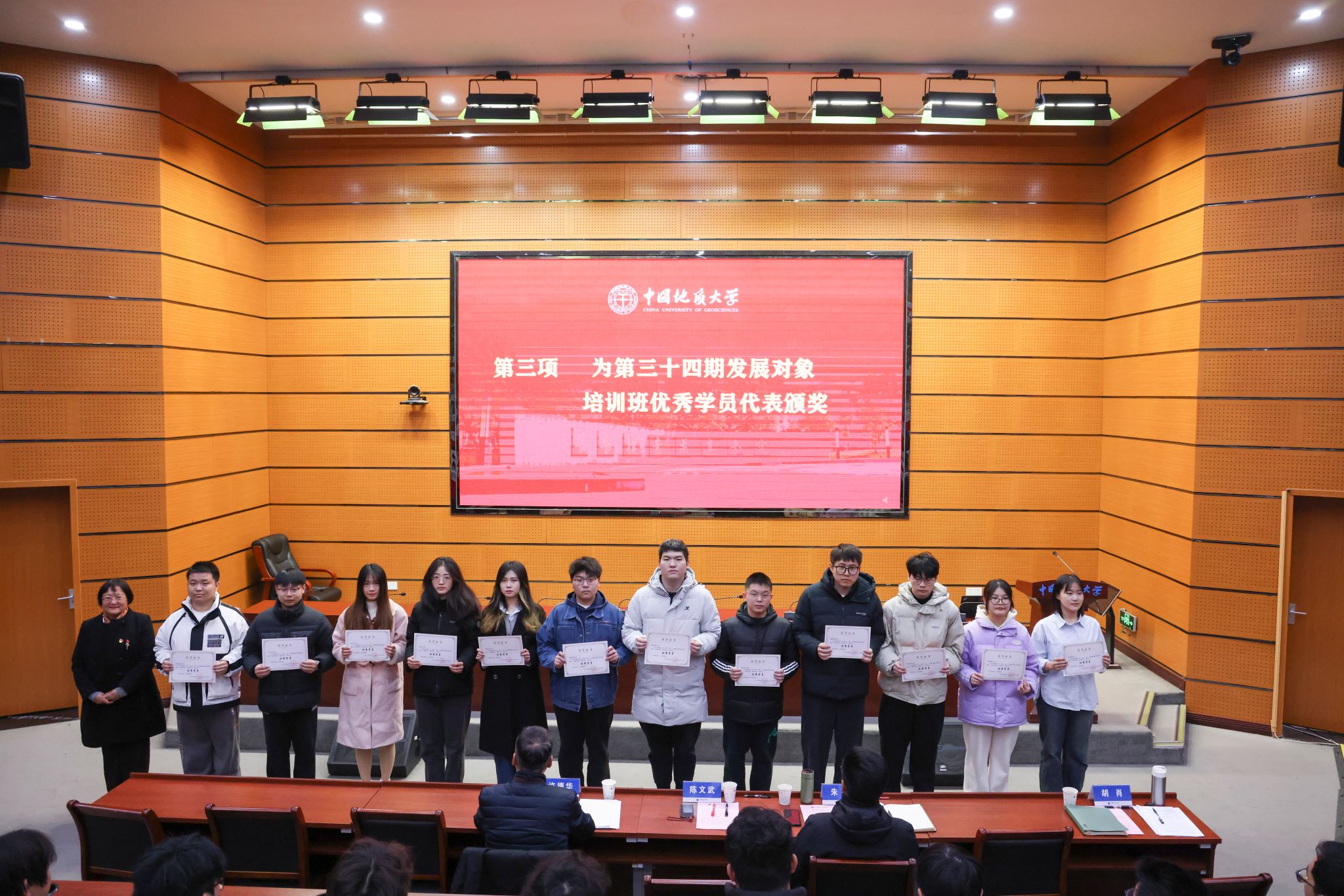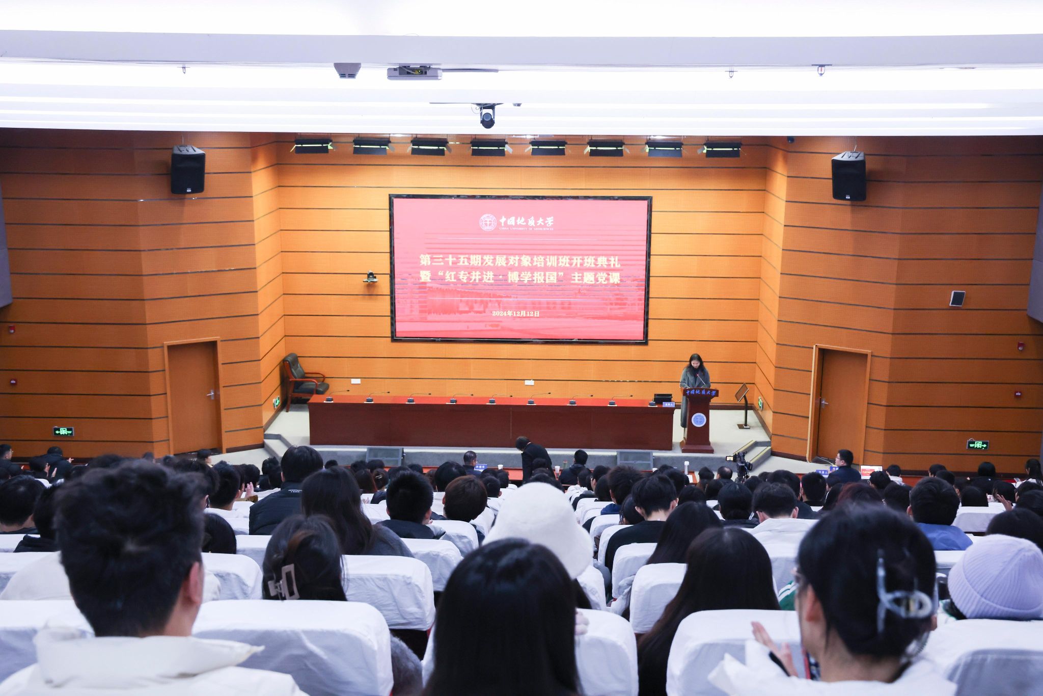 第三十四期发展对象培训班优秀学员代表、地球科学学院2023级博士生王璇,第三十五期发展对象培训班学员代表、外国语学院2022级本科生蔡佳彤分别发言,表达了期待加入党组织的坚定信念,号召参训学员把握学习机会,提升理论素养,争做有理想、敢担当、能吃苦、肯奋斗的新时代好青年。