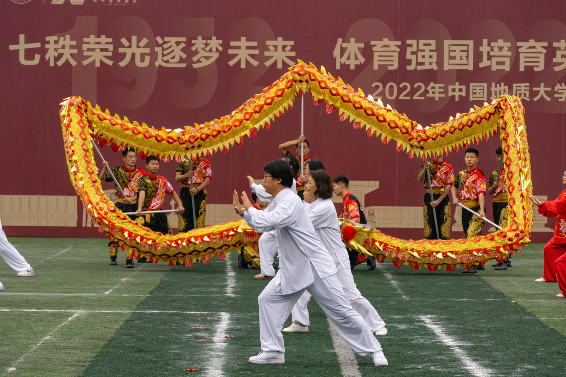 2022年11月,地大舞龙队在校秋季运动会上表演 孙彦钦 摄