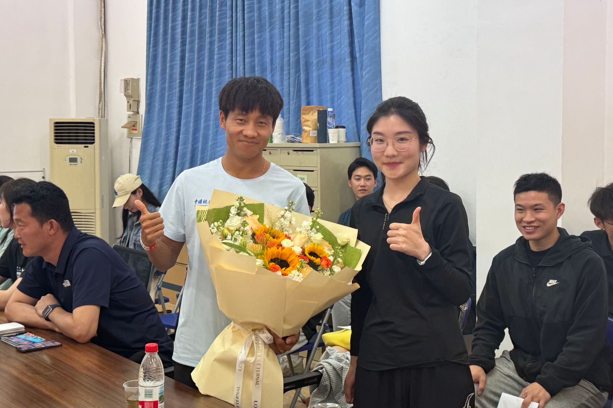 何建新对何杰荣获的佳绩表示祝贺,何杰通过不懈努力取得突出成绩,践行了攀登精神和校训精神。朱丹勉励何杰发挥朋辈示范引领作用,激发广大学生走向操场,积极参加体育锻炼。李元期盼何杰能够不断突破自我,实现更高成就。