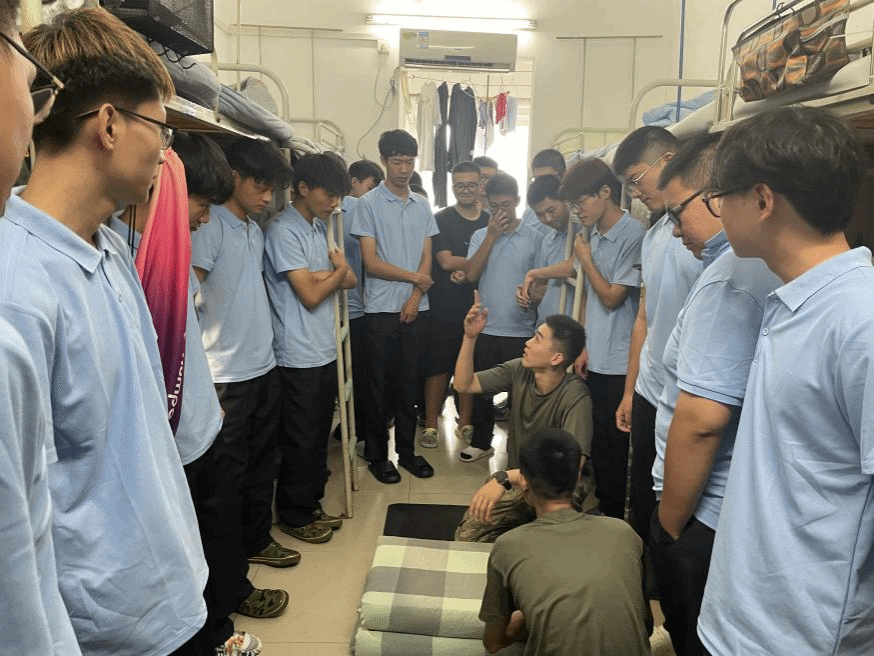 学校的优秀宿舍选树工作向来是“从娃娃抓起”。每年新生军训伊始,各营连排教官、指导员深入学生宿舍,将内务整理作为军训“第一课”,从叠被子教起,通过“学、练、展、讲”开展宿舍内务大比拼,引导新生共同营造有序宿舍环境,为文明宿舍建设打好基础。