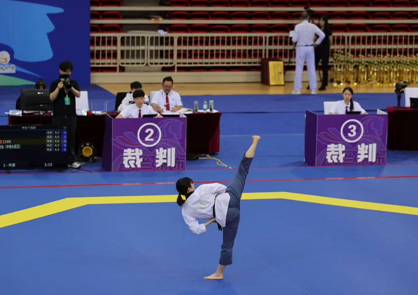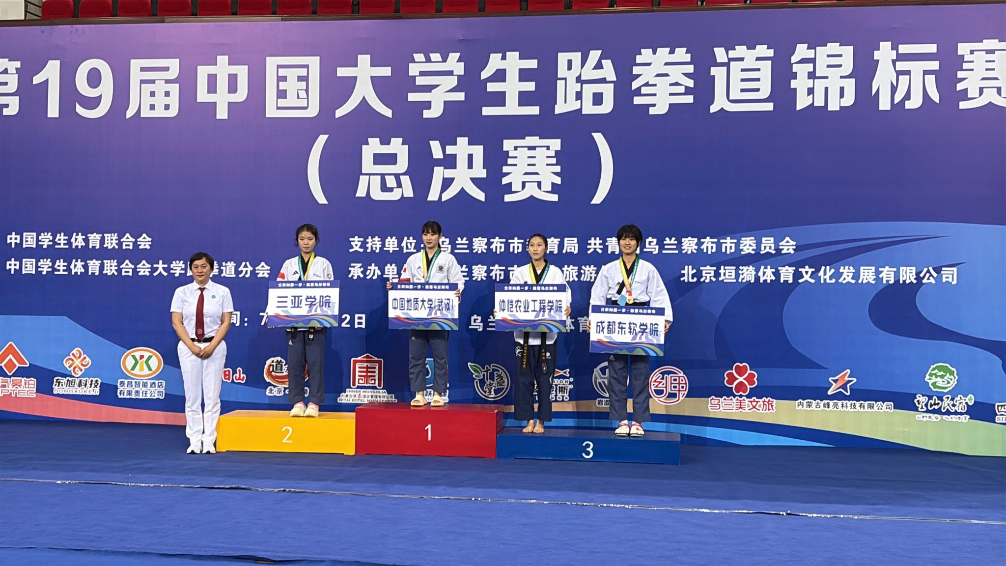 地大新闻网讯 7月6日至11日,第19届中国大学生跆拳道锦标赛(总决赛)在内蒙古乌兰察布举行,本次比赛由中国学生体育联合会主办,中国学生体育联合会大学跆拳道分会执行,是中国大学跆拳道水平最高级别的赛事,共有来自全国155所高校的1090名运动员、教练员参赛。米兰跆拳道队谢欣怡同学参加甲组女子个人高阶品势和甲组女子个人段位品势两个项目,经过顽强拼搏,斩获2枚金牌。