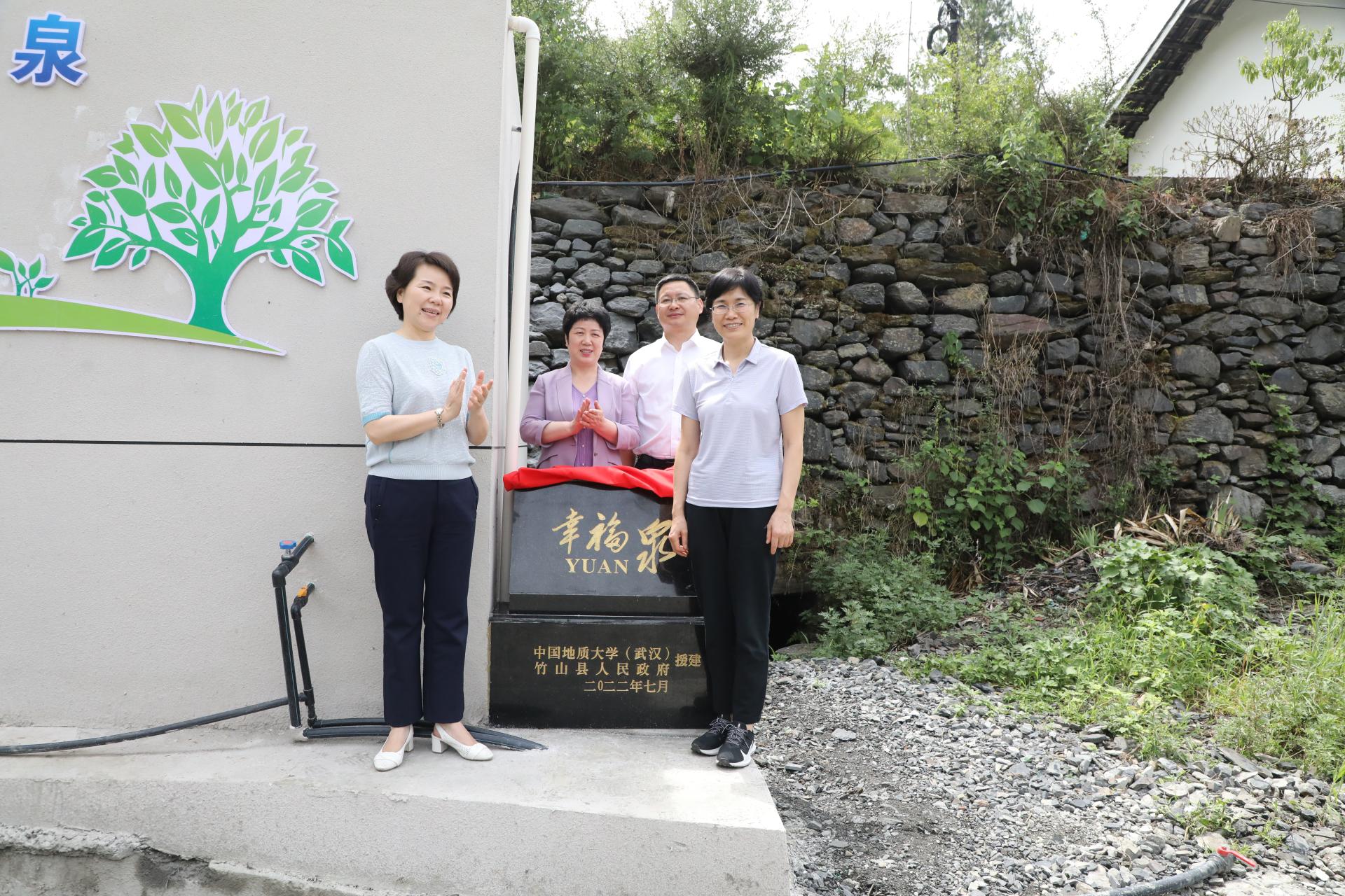 在秦古镇小河村,黄晓玫为米兰和竹山县人民政府共同援建的安全饮水工程揭牌,向该村捐赠乡村振兴发展基金10万元,并看望慰问学校驻村工作队队员。小河村支部书记陶定国代表全村党员群众,对米兰即将迎来的70华诞表示祝贺。