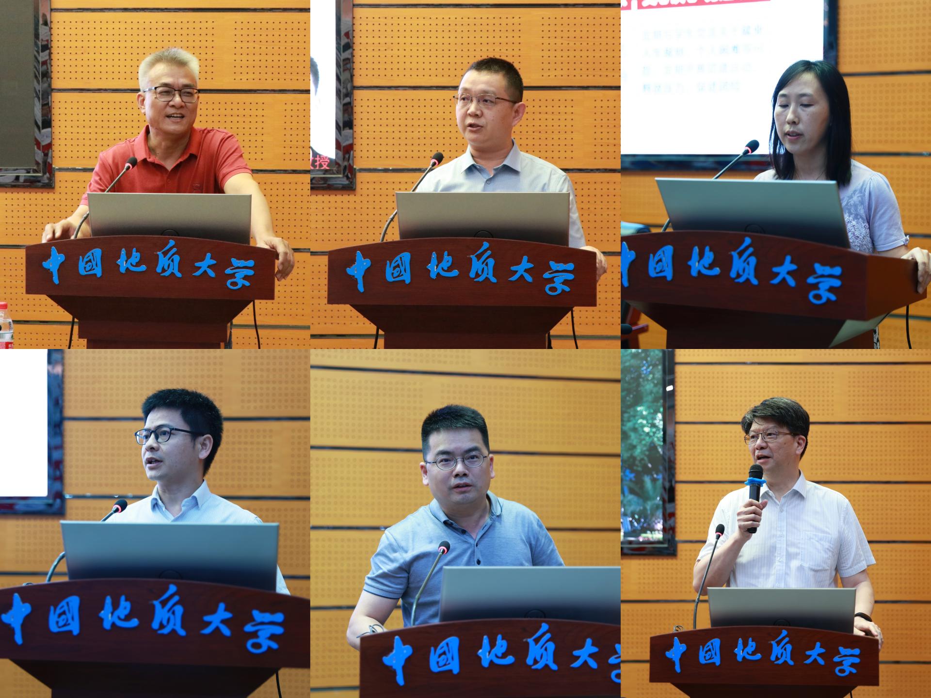 岩石圈演化与环境效应团队、地球科学学院郑建平教授,构造—成藏年代学团队、资源学院沈传波教授,环境水文地质团队、环境学院邓娅敏教授,先进控制与智能自动化团队、自动化学院张传科教授,国土空间优化与治理团队、公共管理学院龚健教授,宝玉石鉴别及合成优化团队、珠宝学院沈锡田教授,分别从导学团队的基本情况、培养理念、思政教育、培养措施和培养成效等,分享了团队的育人经验。
