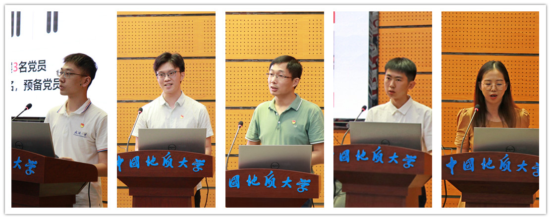 全国高校“百个研究生样板党支部”、武汉大学水利水电学院水文一支部原支部书记叶浩,全国高校“百个研究生样板党支部”、华中农业大学经济管理学院湖北农村发展研究中心研究生第一党支部王安邦,中国科学院水生生物研究所淡水生态学研究中心第一党支部书记李为,米兰地学院“金钉子”研究生党支部书记杨鑫,地空学院刘光鼎研究生党支部书记刘彦娇,分别以《以水舞文,党建为人》《学思悟践,细照笃行》《创新支部活动方式,强化青年党员政治思想引领》《红专并进,矢志创新》《传承红色基因,培育样板党支部》为题,从支部队伍建设情况,支部活动创新方式,支部组织、制度和文化建设等方面,进行了经验交流。
