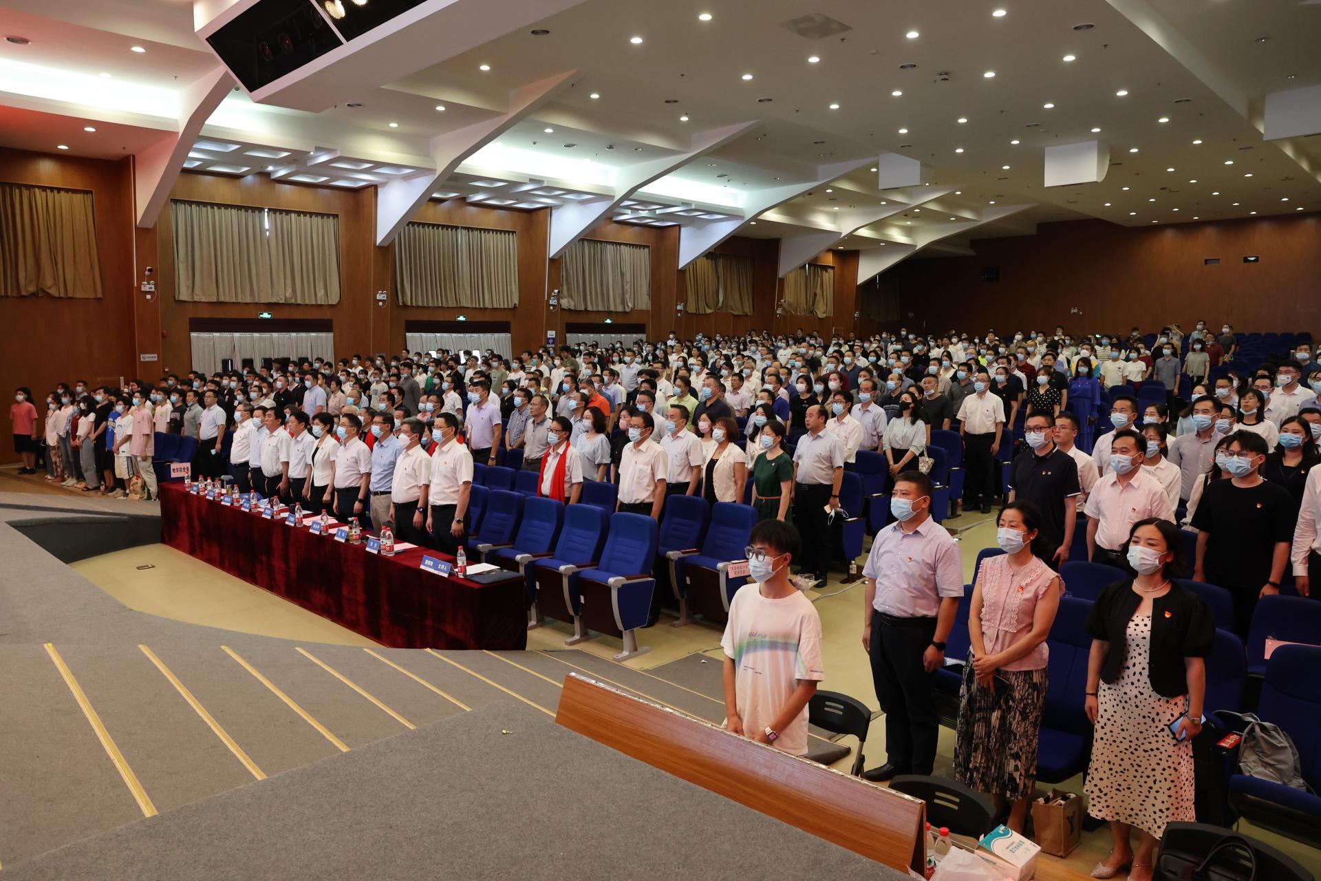 与会全体同志齐唱《没有共产党就没有新中国》,嘹亮的歌声响彻弘毅堂。(审稿 陈华文)