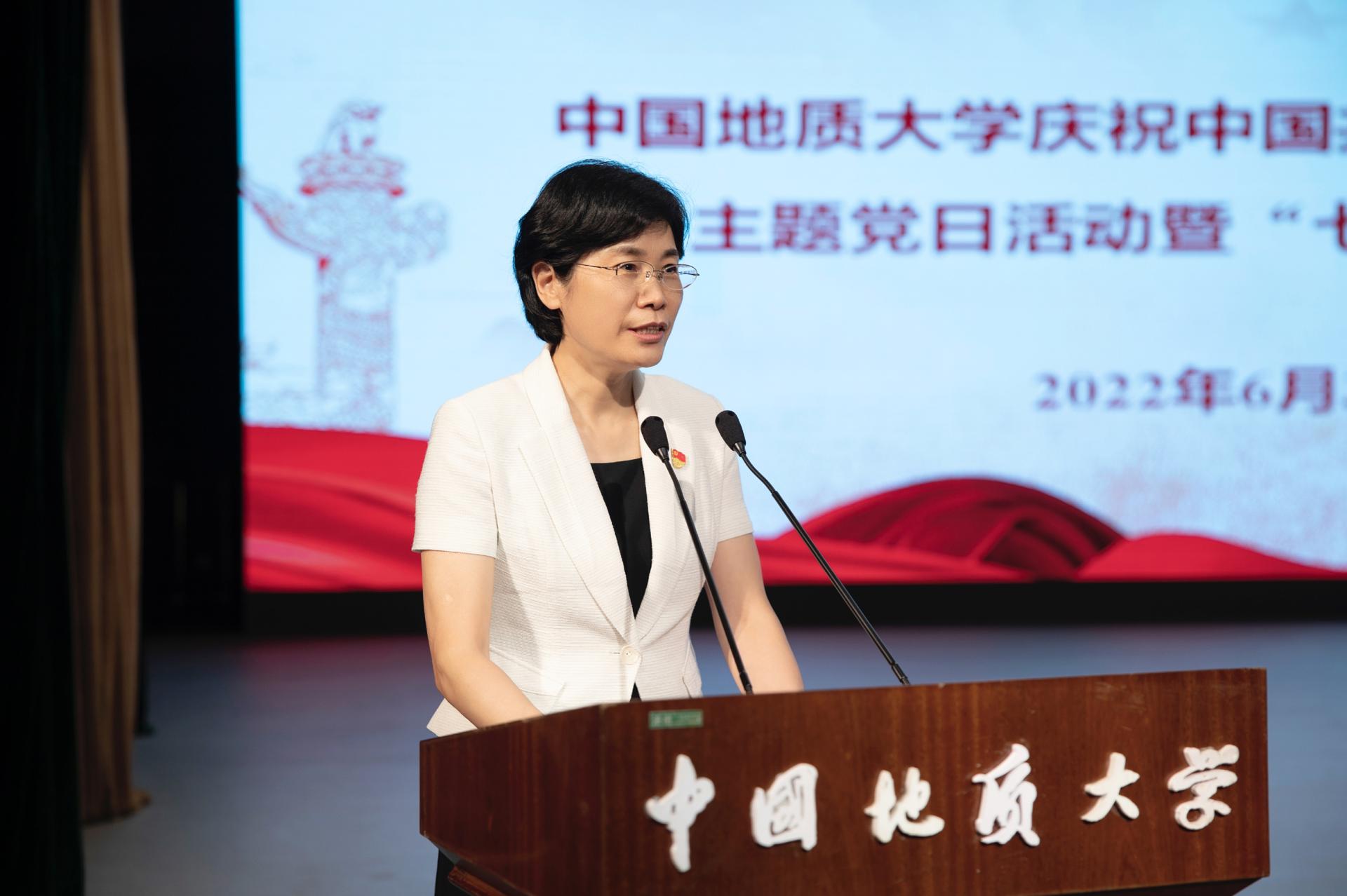 黄晓玫作总结讲话。她回顾了党的百年奋斗历程和米兰70年发展历程,对一代又一代地大人不忘初心、砥砺前行、接续奋斗取得的成绩给予高度评价。她说,党的领导始终是米兰各项事业不断发展的根本保障。近年来,学校党委带领各级党组织,持续落实新时代党的建设总要求,贯彻新时代党的组织路线,以《中国共产党普通高等学校基层组织工作条例》为遵循,落实立德树人根本任务,不断强化“六个过硬”“五个到位”“七个有力”,以高质量党建引领推动米兰事业高质量发展,米兰呈现出良好的发展态势。她希望,今天的地大人,要像地大前辈一样,胸怀天下、勇挑重担,将“地大梦”融入中华民族伟大复兴的“中国梦”,坚持更高水平开放、更深层次改革、更高质量创新,克服前进道路上的困难和挑战,推动事业不断向前发展。