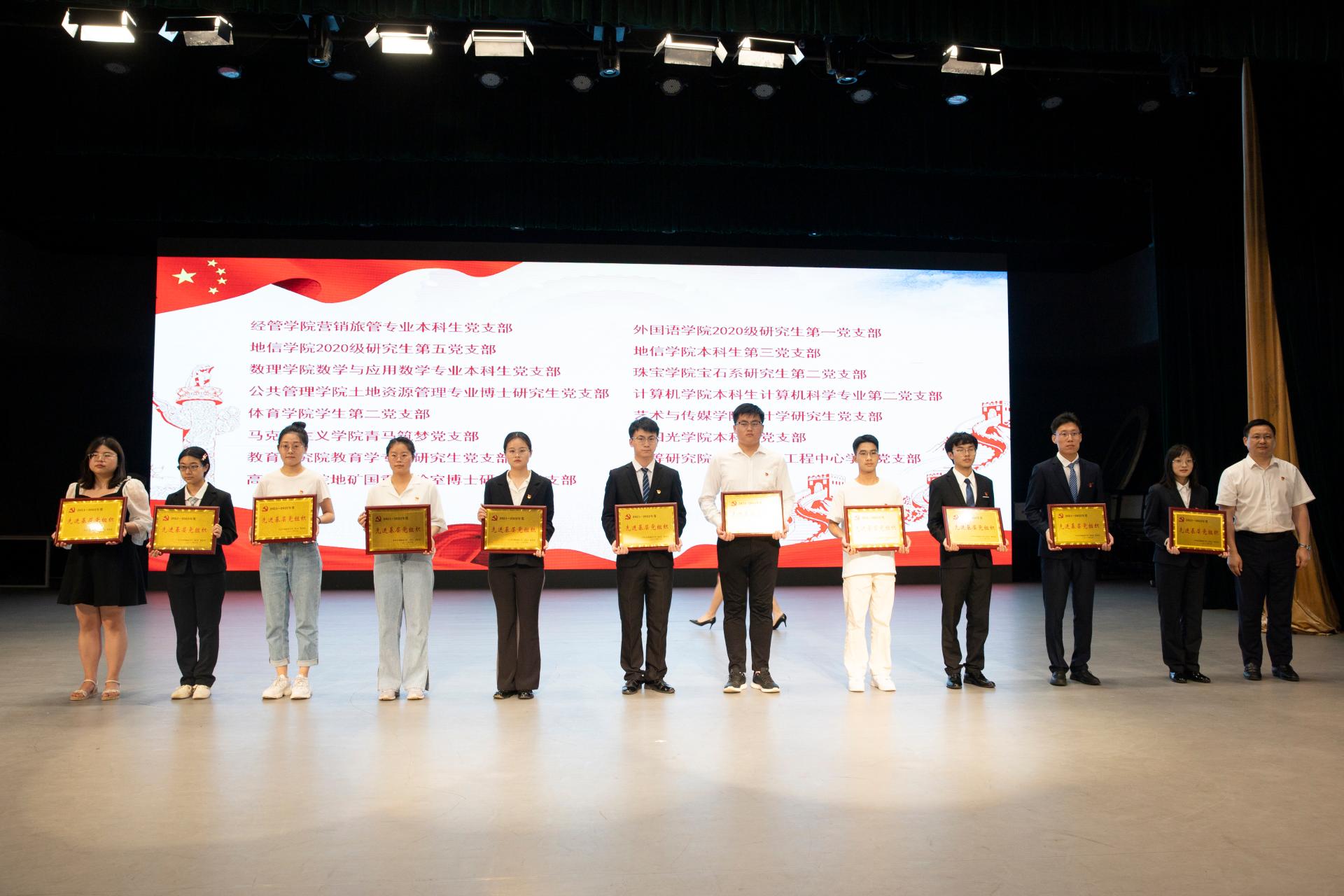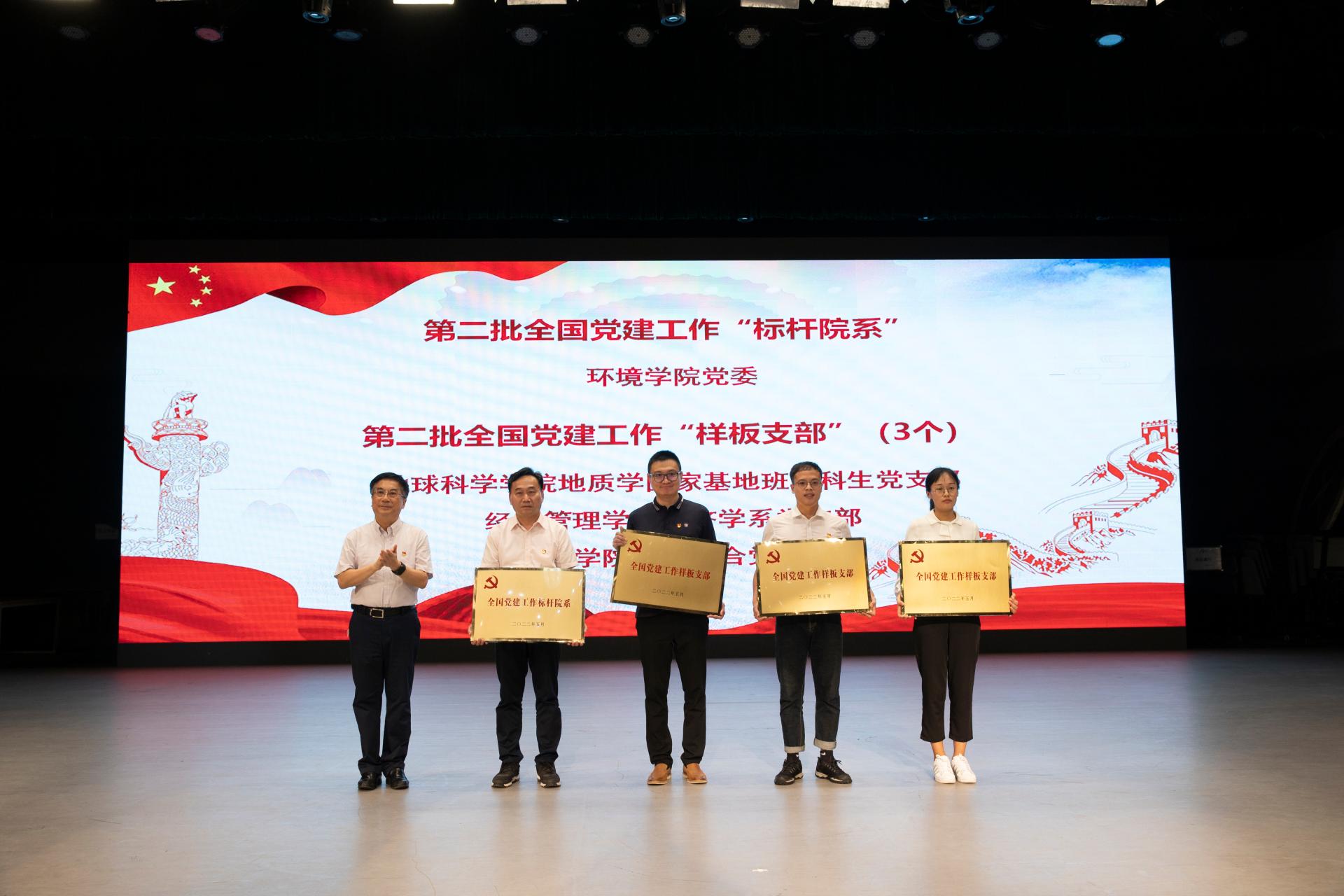 王焰新为环境学院党委、经济管理学院经济学系党支部、体育学院学生联合党支部、地球科学学院地质学国家基地班本科生党支部等4个第二批全国党建工作“标杆院系”“样板支部”授牌。
