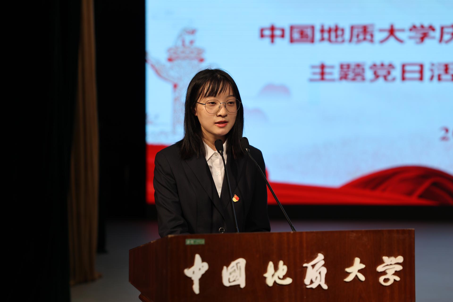 学生优秀共产党员代表、地球科学学院本科生胡楚玉,教职工优秀共产党员代表、计算机学院大数据系主任阎继宁,教职工优秀党务工作者代表、海洋学院党委副书记钟苹,教职工先进基层党组织代表、数理学院数学与应用数学系党支部书记万灵,“光荣在党50年”老党员代表蔡继彪分别发言。