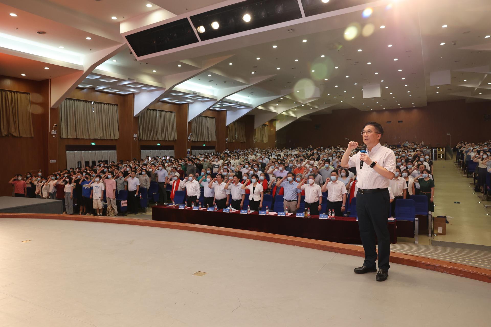 党员重温入党誓词暨新发展党员入党宣誓,校长、党委副书记王焰新院士领誓。