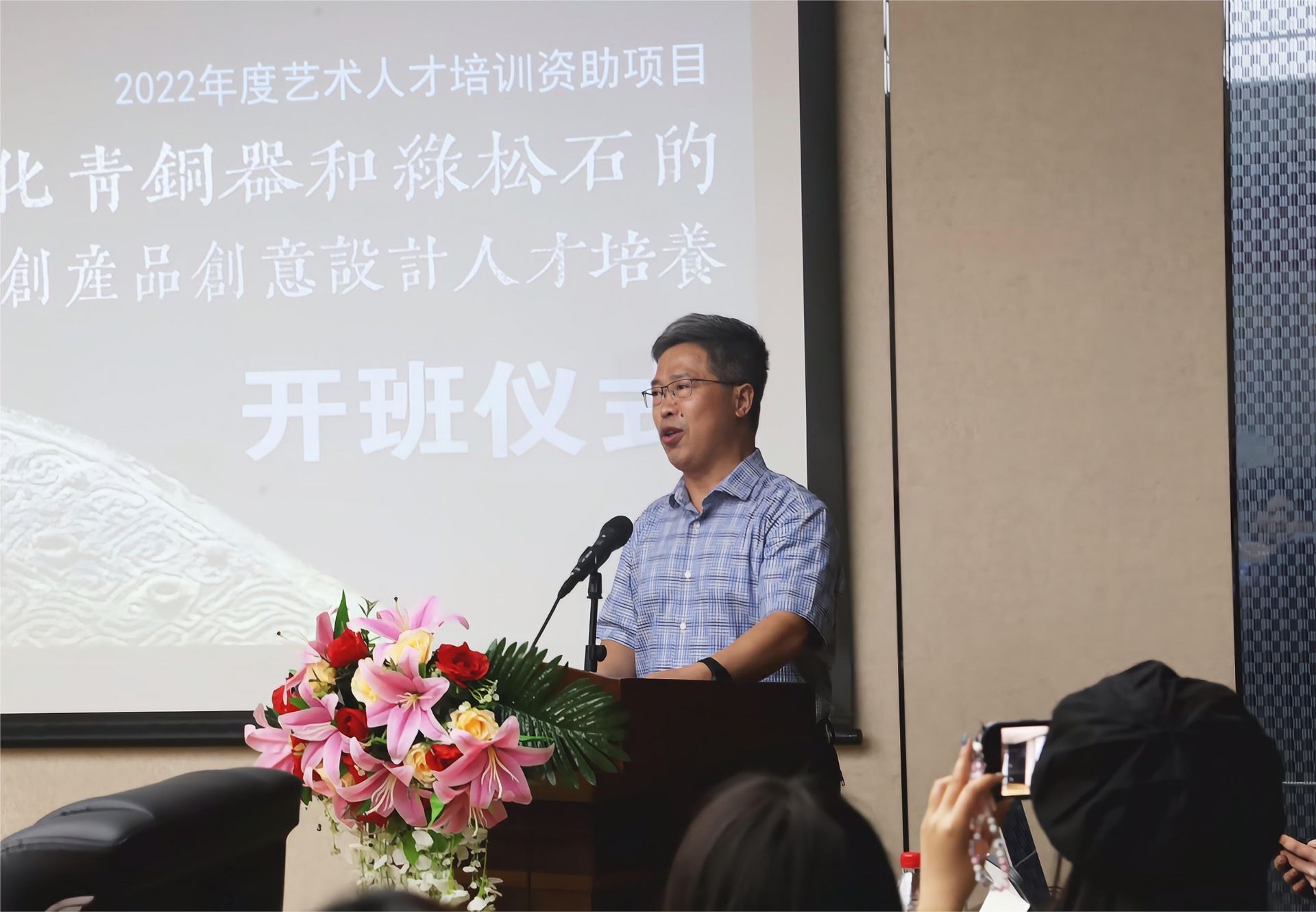 王华向参加开班仪式的领导、专家及所有学员们表示欢迎,他简要介绍了学校和珠宝学院的发展历史。他指出,要坚持以力求上进,与时俱进为发展方向,坚持特色性发展、内涵式发展、高质量发展,着力培养创新型、复合型、应用型高水平人才。他要求参训学员珍惜学习机会,深刻认识文化创意产业重要意义和支撑作用,要互学互鉴、交流思想,开拓思路、汇聚创意,努力创作优秀作品,通过文创产品移动载体,持续输出湖北优秀荆楚文化的当代价值观,为促进荆楚文化创意产业持续健康发展作出贡献,增强文化自信。
