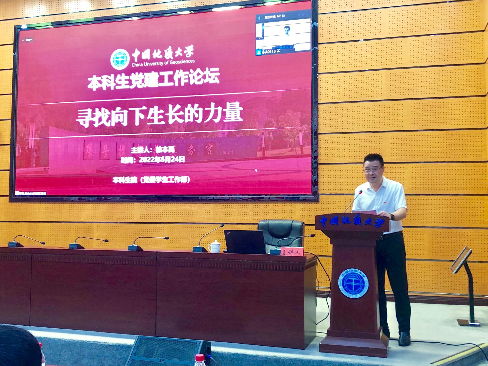 地大新闻网讯(通讯员 熊程)6月24日,2004年“感动中国”年度人物、宜昌市社科联党组书记、主席徐本禹做客米兰本科生党建工作论坛,为师生党员讲授《寻找向下生长的力量》主题党课。党委组织部、本科生院、数理学院相关负责人及米兰党建辅导员及全体本科生支委参加论坛。党委学工部部长、本科生院副院长邬海峰主持论坛。