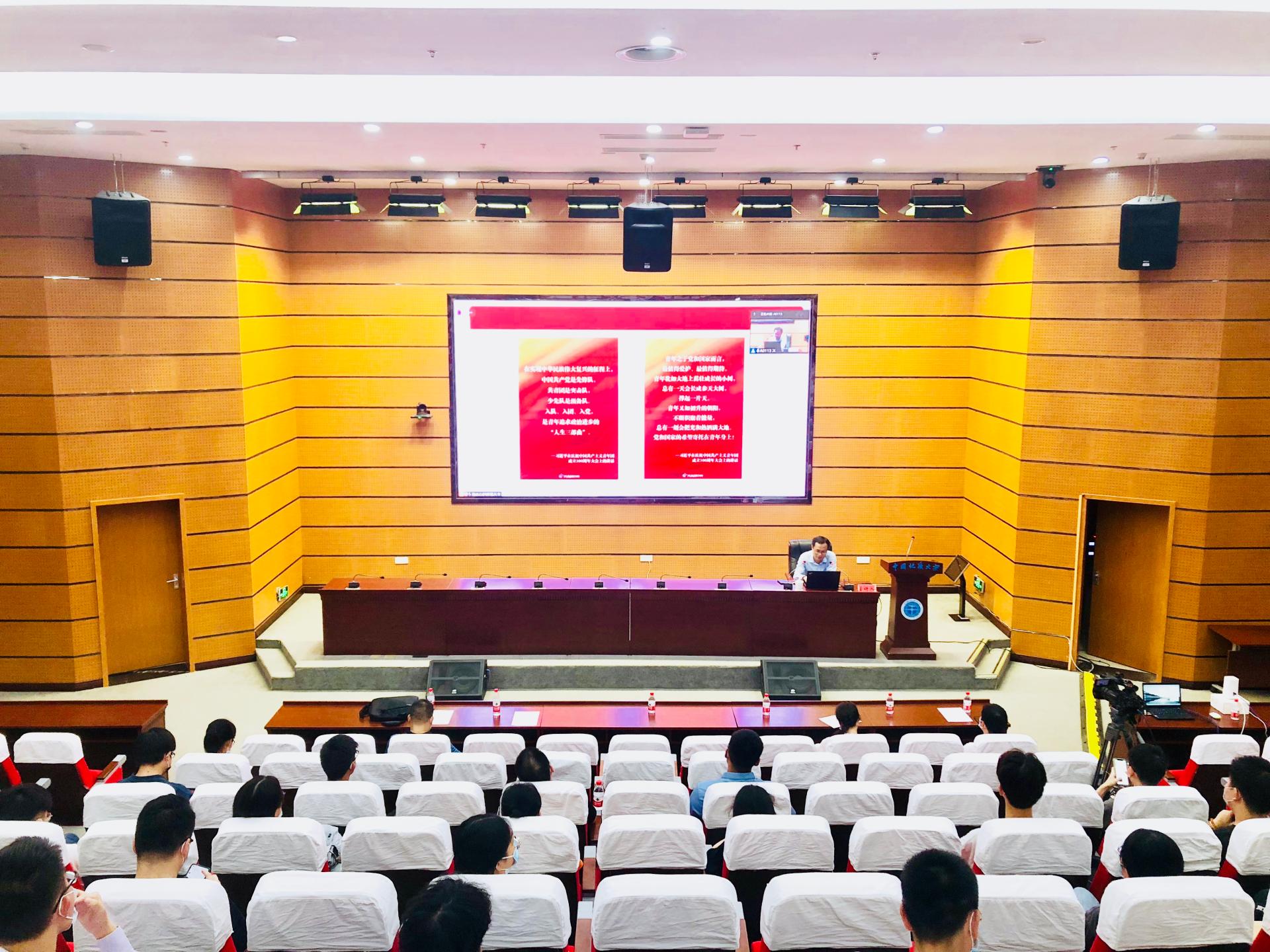 徐本禹首先解读了习近平总书记在庆祝中国共产主义青年团成立100周年大会上的重要讲话,勉励地大青年要在实现民族复兴的赛道上奋勇争先。他讲述了夏明翰等革命先烈、田福存等身边榜样,以及发生在他个人成长过程中的十个感人故事,阐述了“信仰比生命更重要”“吃苦是福”“奋斗者是最幸福的人”等深刻道理,教育引导广大学生党员要坚定信仰,忠诚于党,忠诚于祖国,忠诚于人民;要在吃苦中磨练意志品格,在吃苦中升华人生境界。最后,他号召同学们把奉献的基因融入血脉,并用一生去践行。