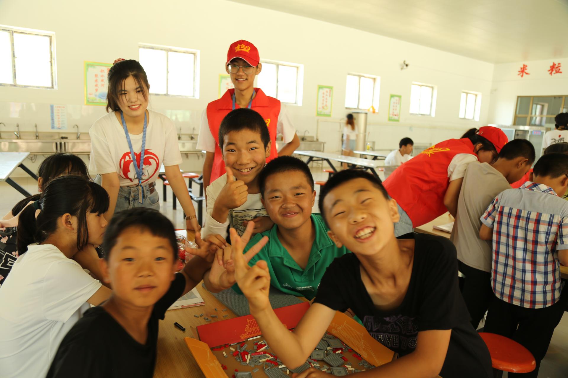 支教团指导孩子们搭积木