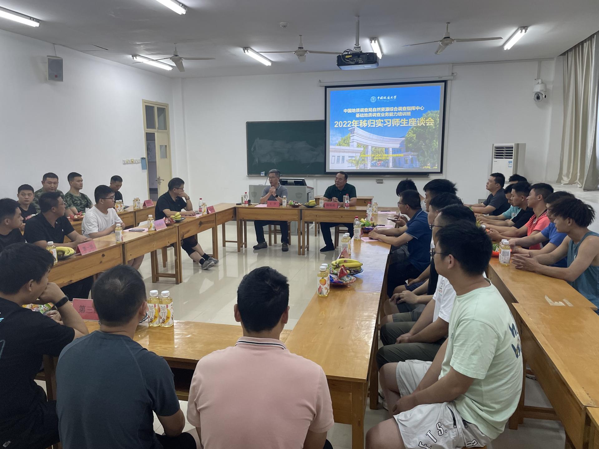培训班带队实习老师曹晓峰、班主任皮道会分别介绍了本次实习情况及相关工作安排;汪新庆老师介绍了数字填图课程的授课情况及课程要求;助教付栋良分享了实习的感受与思考;学生代表畅谈了实习体会,并提出了建议。