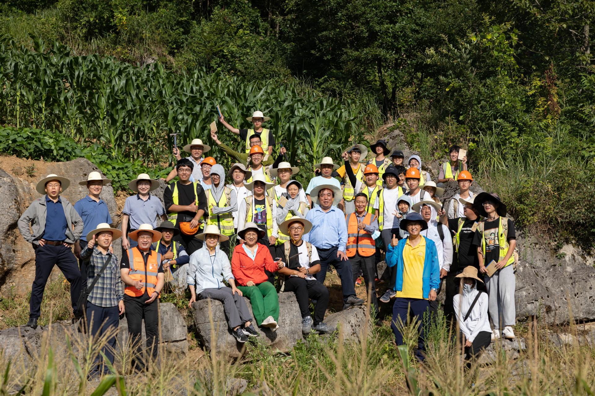 黄晓玫、赖旭龙与野外实习师生合影