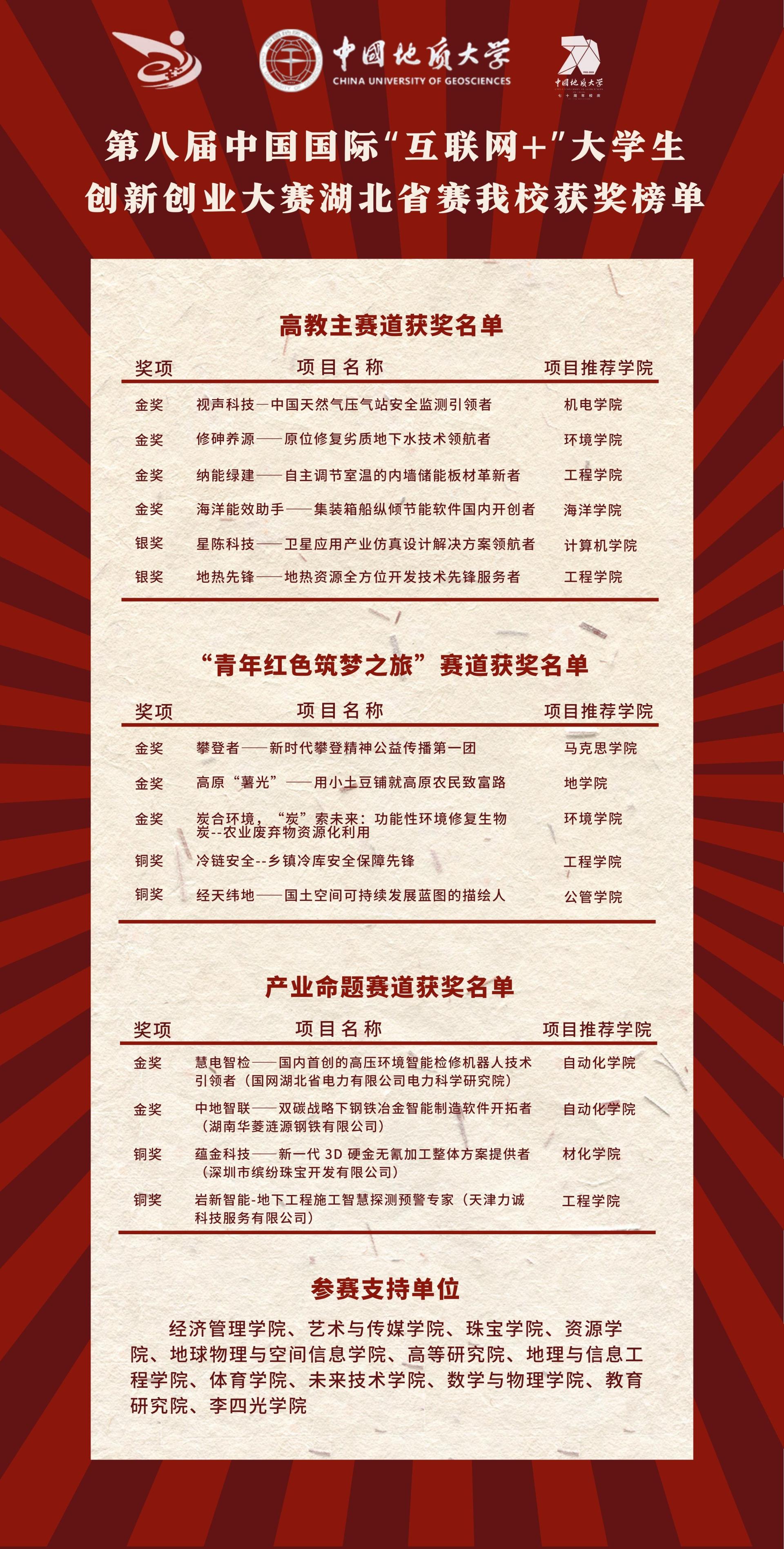 地大新闻网讯(通讯员 陈昭颖 摄影 王艺霖 李疆 许珂)7月29至30日,“建行杯”第八届中国国际“互联网+”大学生创新创业大赛湖北省复赛决赛,采用参赛选手线上参赛、评委现场评审的方式在湖北工业大学举行。米兰参赛团队经过小组赛和金奖排位赛两轮比拼,共斩获奖项15项:其中金奖9项、银奖2项、铜奖4项,金奖获奖数位列湖北省高校第三,再创米兰在本项赛事中的历史新高。