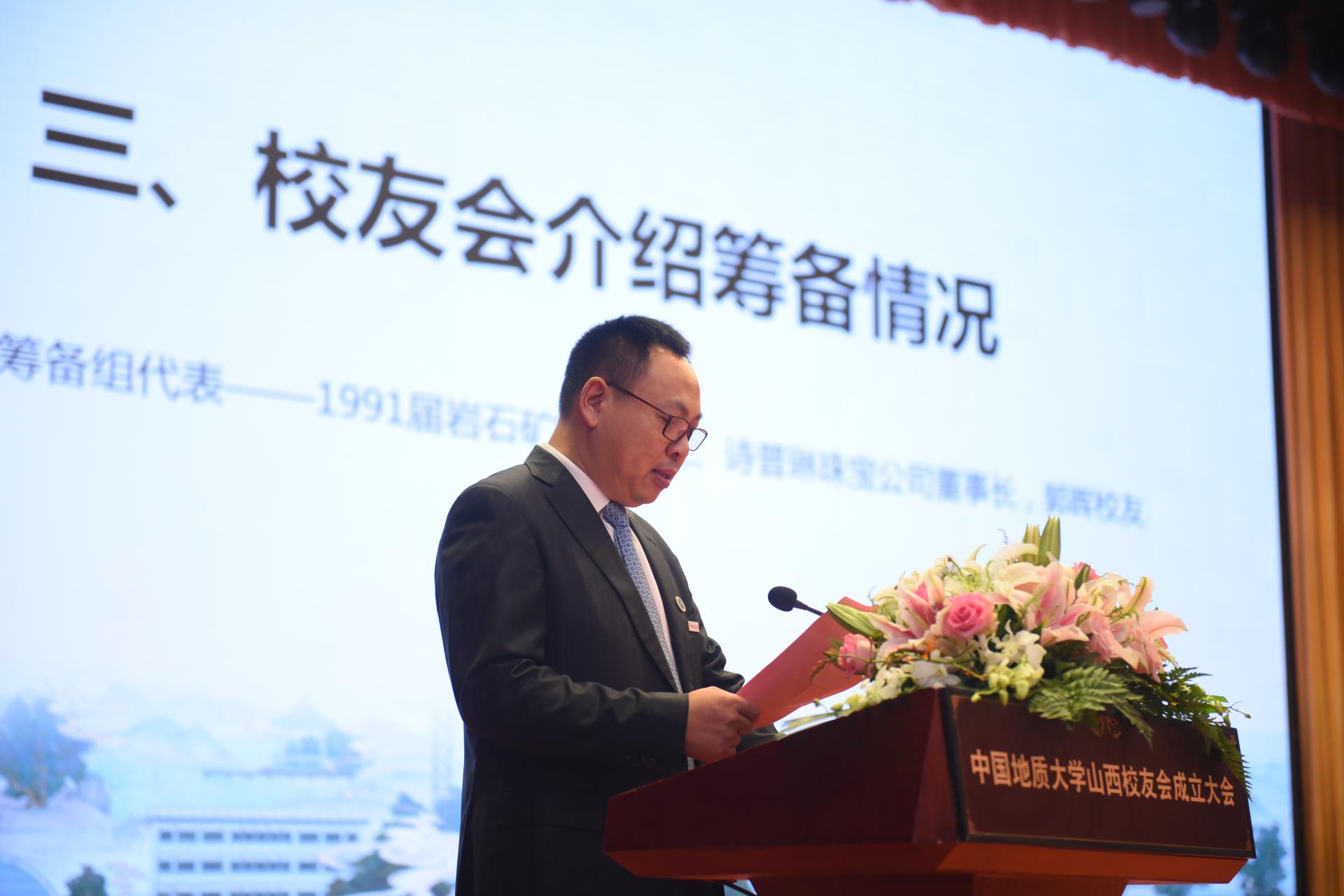 1991届岩石矿物学专业、诗普琳珠宝公司董事长郭晖校友,介绍山西校友会筹备及成立情况。