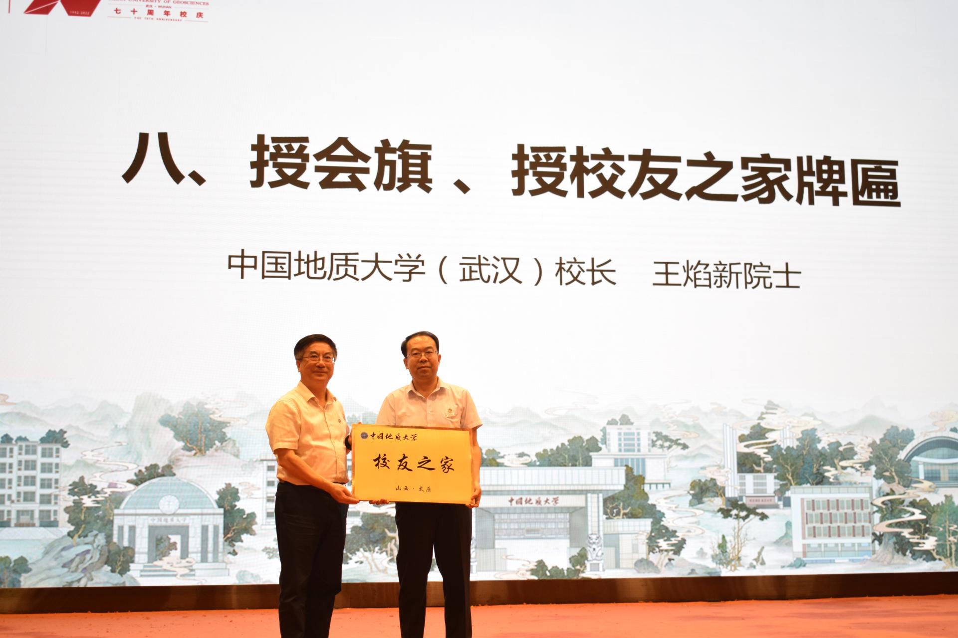 王焰新向山西校友会授校友之家牌匾,康志帅接牌。