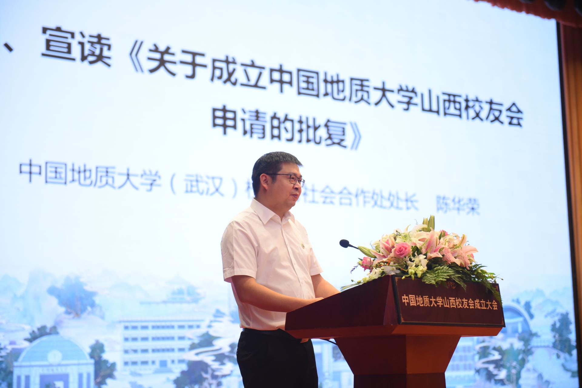 校友与社会合作处处长陈华荣宣读《关于成立米兰milan官方网站山西校友会申请的批复》。