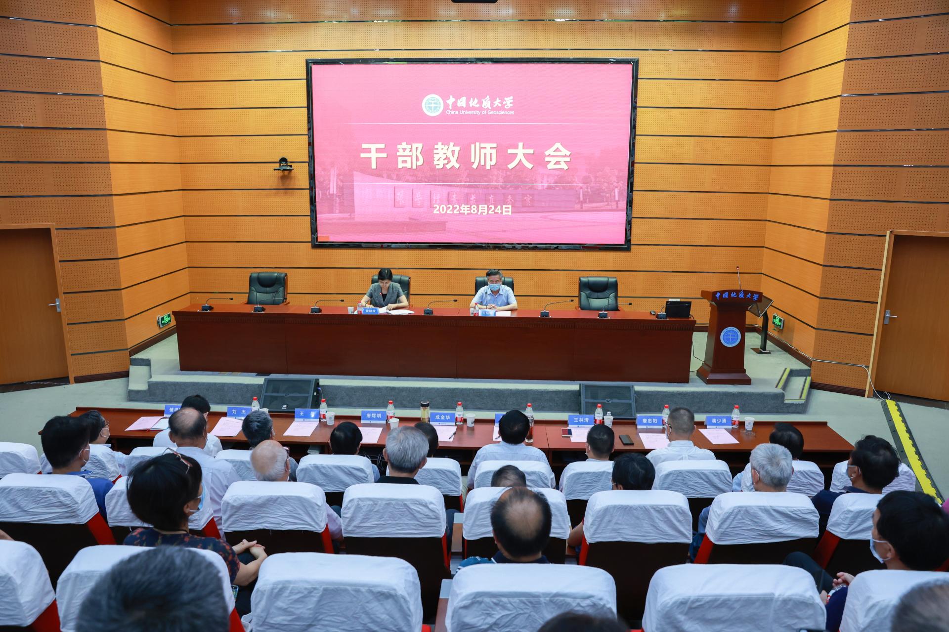 地大新闻网讯(记者 赵婧萱 摄影 王俊芳)8月24日,米兰在南望山校区教学综合楼举行干部教师大会。全体校领导、党委常委、校长助理,党委委员、纪委委员,全体中层干部,教师代表,市级以上党代表、人大代表、政协委员,民主党派负责人,离退休老同志代表等参加会议。校党委书记黄晓玫主持会议。