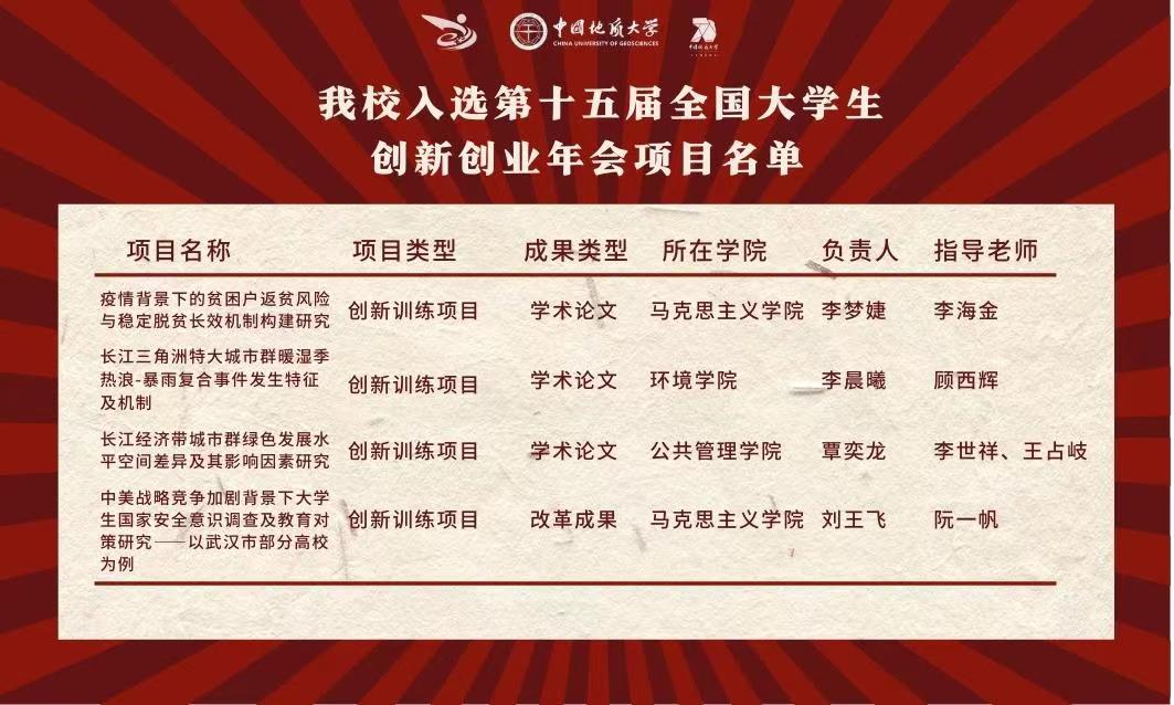 地大新闻网讯(通讯员 陈昭颖 余司琪)近日,经学校遴选申报、省教育厅组织专家评审推荐、“国创计划”专家工作组复选,米兰4项国家级大学生创新创业训练计划项目(以下简称“大创计划”)入选第十五届全国大学生创新创业年会,其中入选学术论文3篇,改革成果展示项目1项,这些项目将代表学校参加11月份在中国矿业大学举行的第十五届全国大学生创新创业年会展示交流。