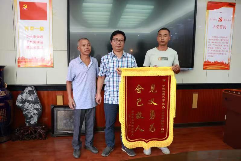 地大新闻网讯(通讯员 秦傲 摄影 王俊芳)8月29日,地大新闻网报道了师生在罗田野外实习中勇救4名落水者事迹。9月9日,罗田县凤山镇碾石河村村支书胡洪铭带领落水者家属,一行四人专程来到武汉,表达了对米兰师生见义勇为的感激之情。