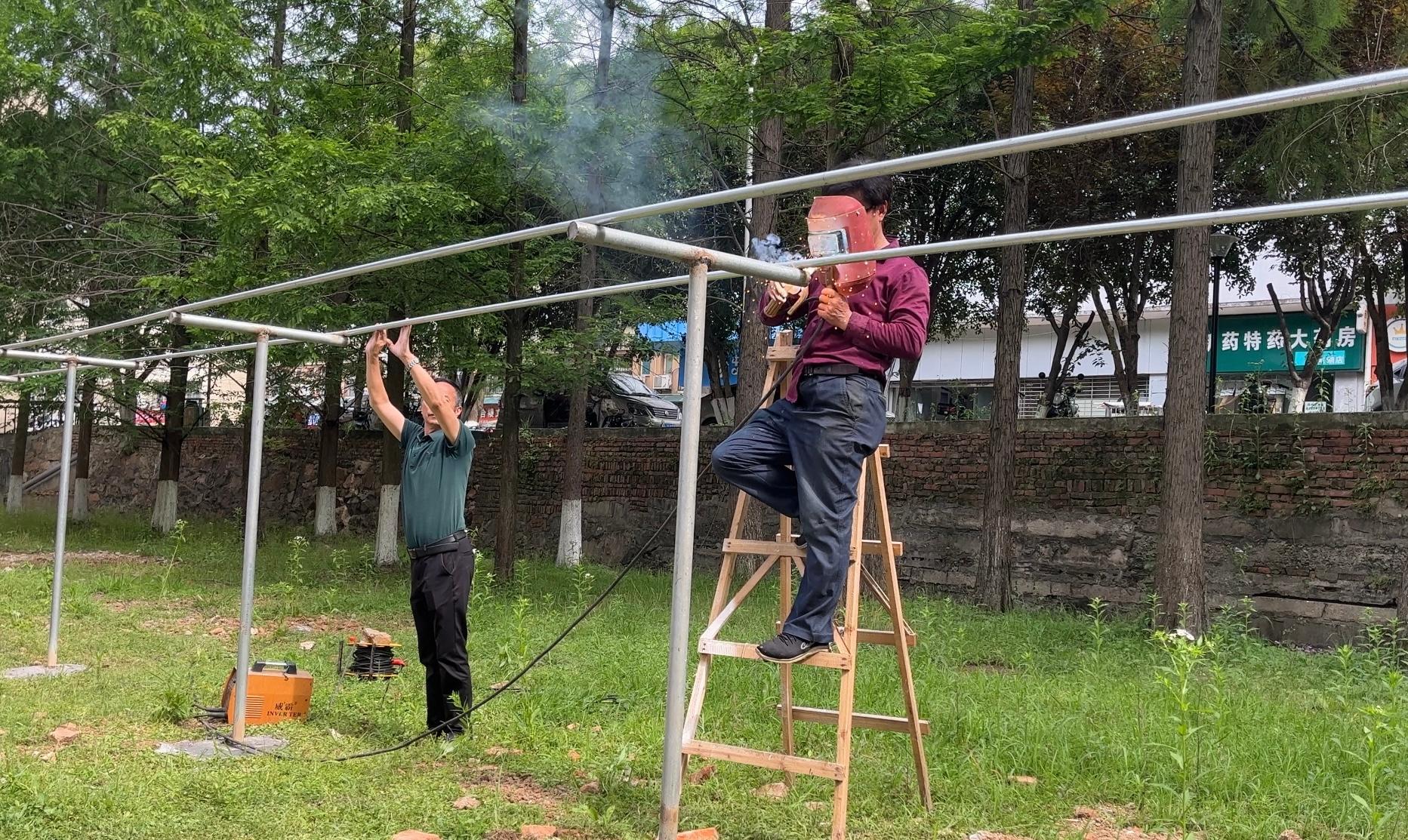 “南望山校区北区部分学生公寓周边晒场数量较少,能否增加晾衣架数量呢?”近日,接到学生要求增设公共晾衣架的电话,学生住宿服务中心立刻组织维修部专业人员,现场踏勘,制定安装计划,报学校审批后,维修师傅从切割钢管、水泥浇筑、立杆焊接、刷漆喷漆等入手,力求做好做精每个细节,总共切割钢管42根,焊接44处,历时3天,在北区13栋、14栋学生公寓后增设了30多米的晾衣架,满足了附近学生的晾晒需求,提高了服务质量。