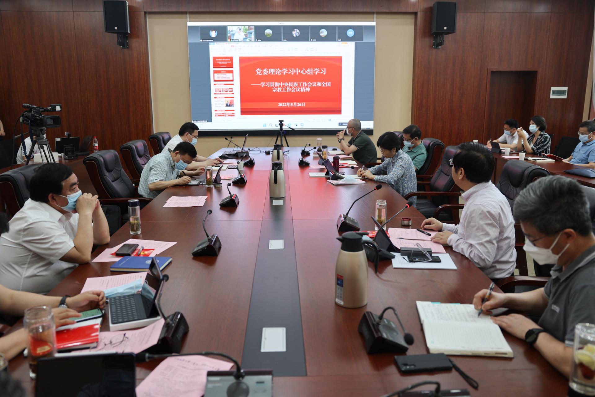 地大新闻网讯(记者 魏海勇 学生记者 池典雅 摄影程晓龙)5月26日,学校在南望山校区东区教学综合楼A701会议室召开党委理论学习中心组学习(扩大)会议,围绕《信访工作条例》和统战民族宗教会议精神开展学习。会议采用线上线下结合方式召开,党委理论学习中心组成员、统战民族宗教、信访工作及有关单位、各二级党组织书记参加会议。校党委书记黄晓玫主持会议。