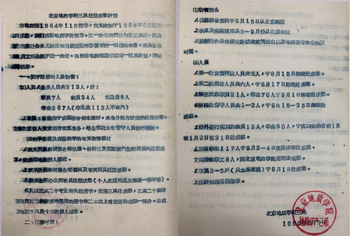 北京地质学院三系迁往成都计划(来自成都理工大学档案馆)