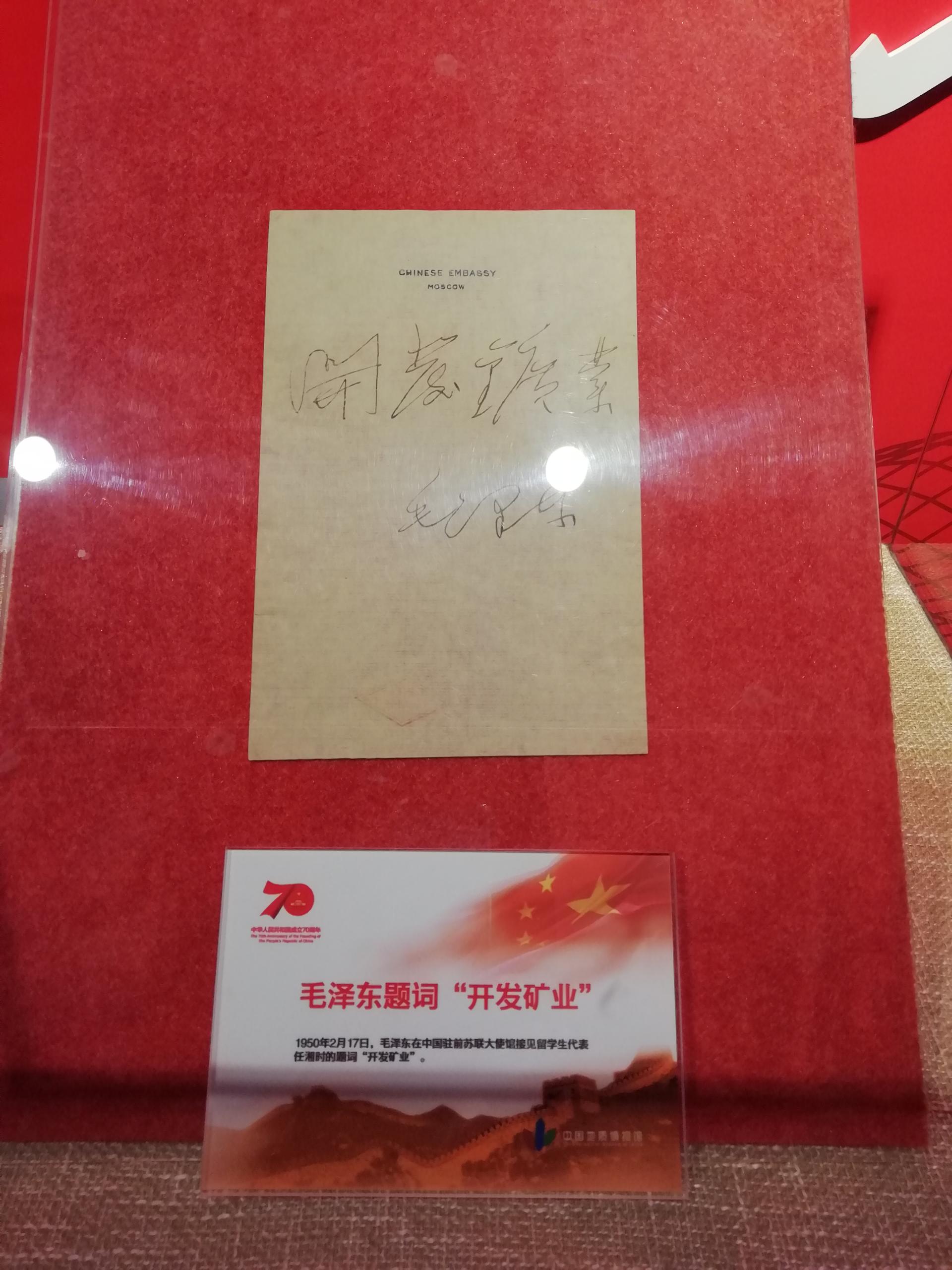 “开发矿业”题词的故事发生在俄罗斯首都莫斯科,是新中国建国初期毛主席关注国家地质找矿事业和地质人才培养,关心关爱当时中国留苏学生成长成才的一段美好记忆。