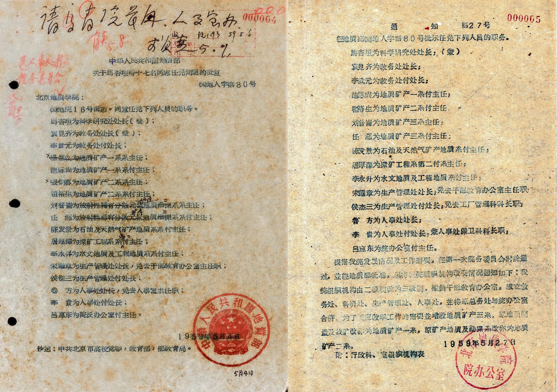 1959年,北京地质学院第四次院务委员会会议决定,将原来放射性系改为“地质矿产三系”