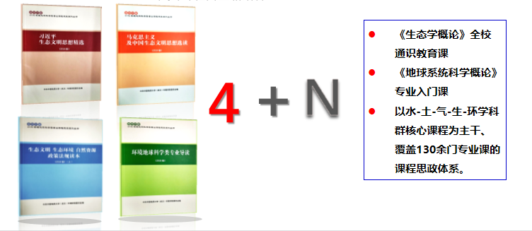 环境学院党委积极推进习近平生态文明思想“三进”,依托水、土、气、生环境学科群,推行美丽中国“4+N”课程思政建设。学院组织师生编写《习近平生态文明思想读本》《马克思主义及中国生态文明思想选读》《生态文明 生态环境 自然资源 政策法规选编》《环境地球科学类专业导读》系列教材,校党委书记黄晓玫为该系列教材作序,四本指导教材每年在5000余名学生中使用。
