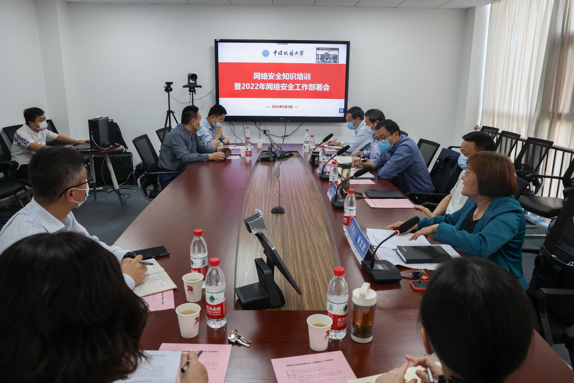 地大新闻网讯(通讯员 高浪 摄影 刘梓琪)5月3日,学校召开网络安全知识培训暨2022年网络安全工作部署会。会议采用线上线下结合方式召开,校党副书记王林清、全体中层干部、各单位办公室主任、各单位网络信息员和系统管理员参加会议,党委组织部部长陈文武主持会议。