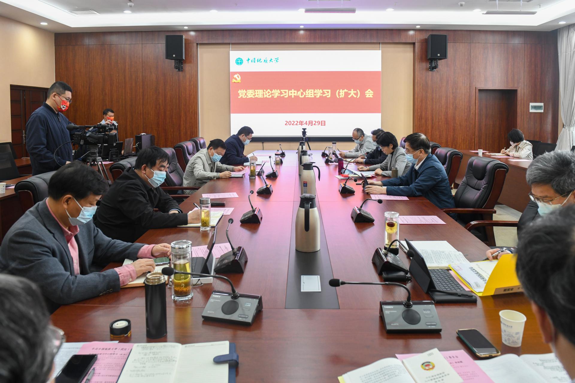 地大新闻网讯(记者 许小康 摄影 程晓龙)4月29日,学校在南望山校区东区教学综合楼A701会议室召开党委理论学习中心组学习(扩大)会议,围绕习近平总书记在中国人民大学考察调研时发表的重要讲话和科技创新开展专题学习。会议采取线上线下相结合的形式召开,校党委理论学习中心组成员、学术委员会全体委员、全体中层干部参加会议。校党委书记黄晓玫主持会议。