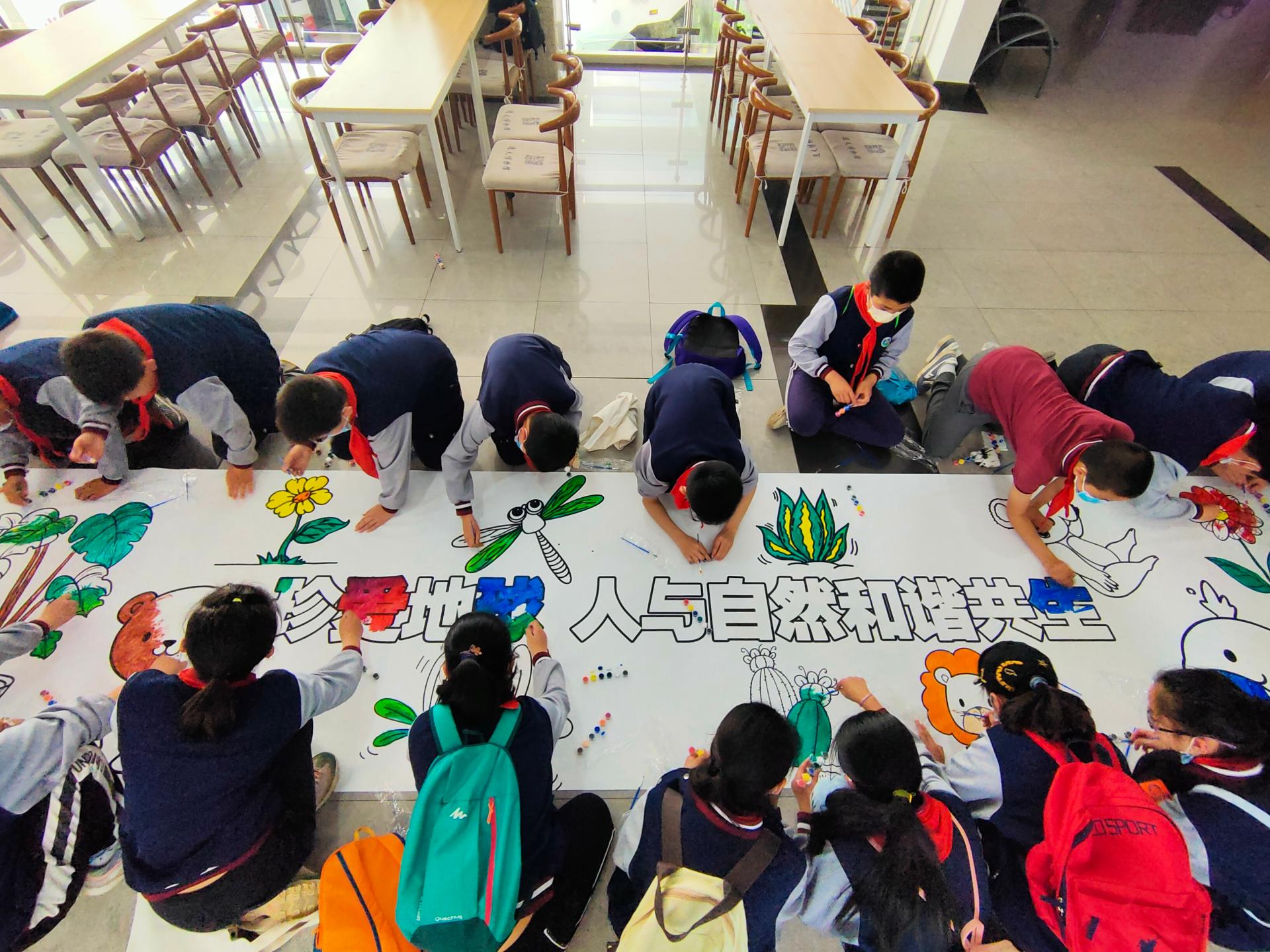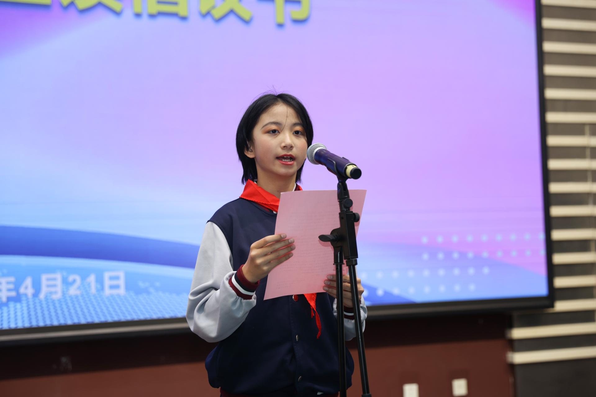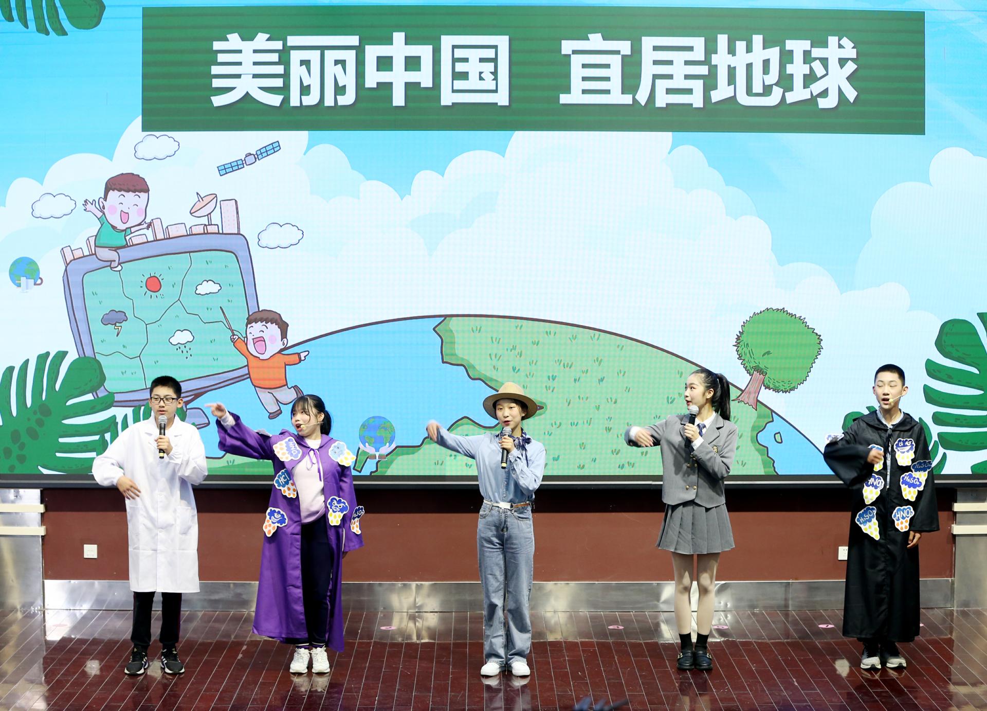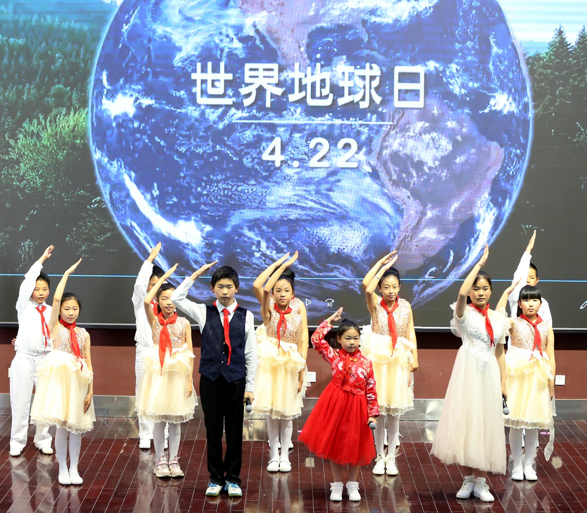附属学校五(2)班石馨雅宣读了“珍爱地球,人与自然和谐共生”倡议书,呼吁大家保护环境、呵护地球。