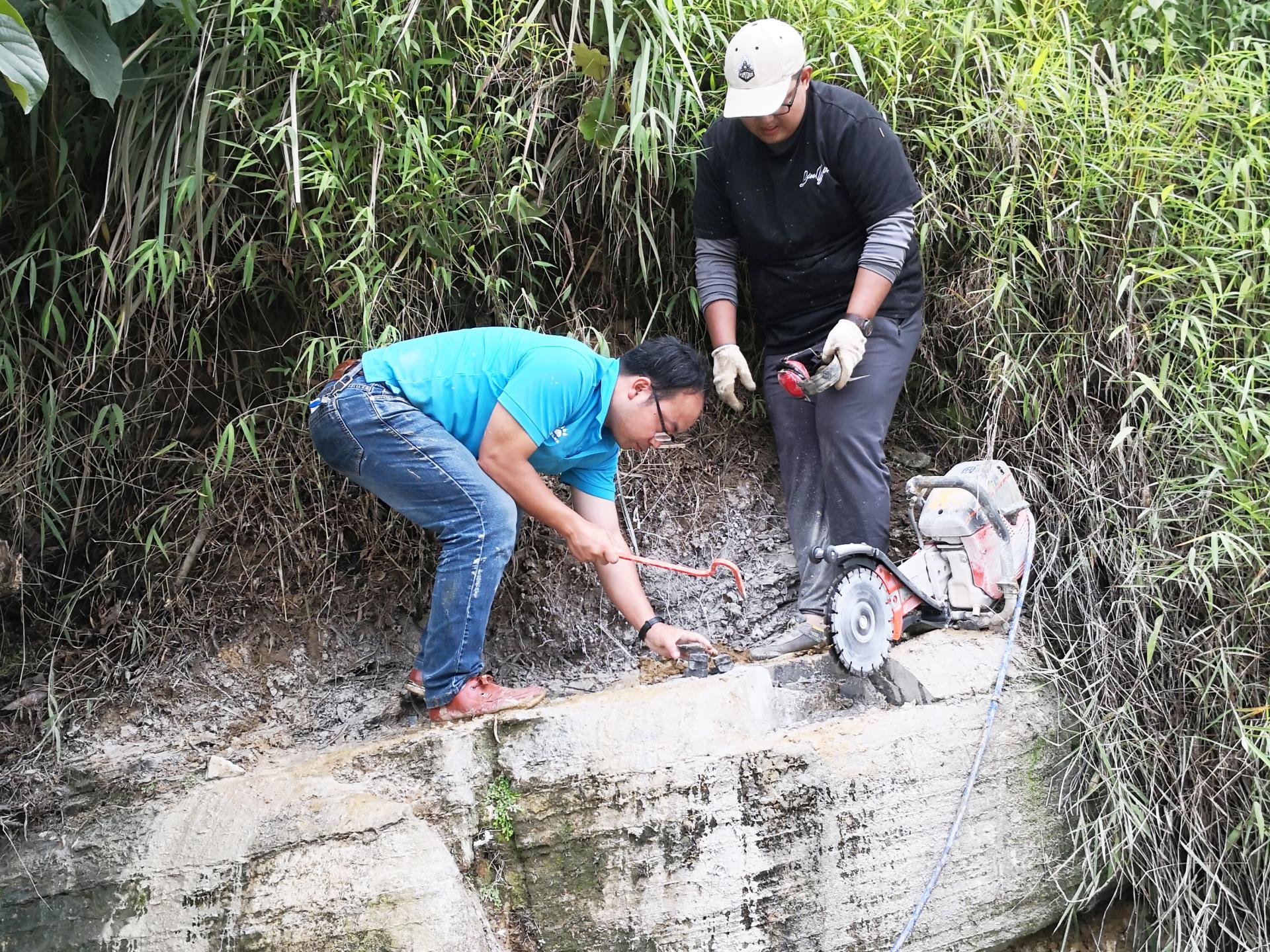 野外考察人员对化石及其围岩进行处理 受访者供图