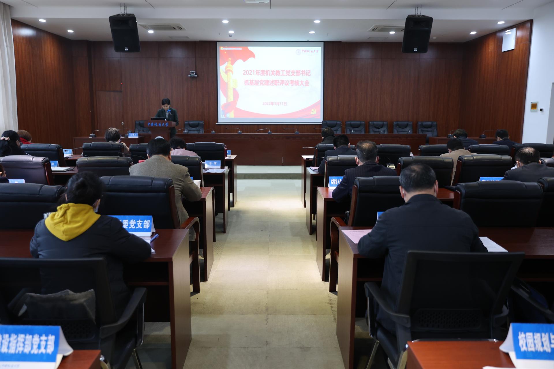 地大新闻网讯(通讯员 王艳平 摄影 程晓龙)为进一步增强机关基层党组织的的组织力,强化管党治党“两个责任”。近日,机关党委在南望山校区A708会议室召开2021年度机关教工党支部书记抓党建述职评议考核大会。校党委书记黄晓玫,副书记唐辉明,机关党委委员、纪委委员,各支部书记,机关全体党员以线下线上的方式参加会议。