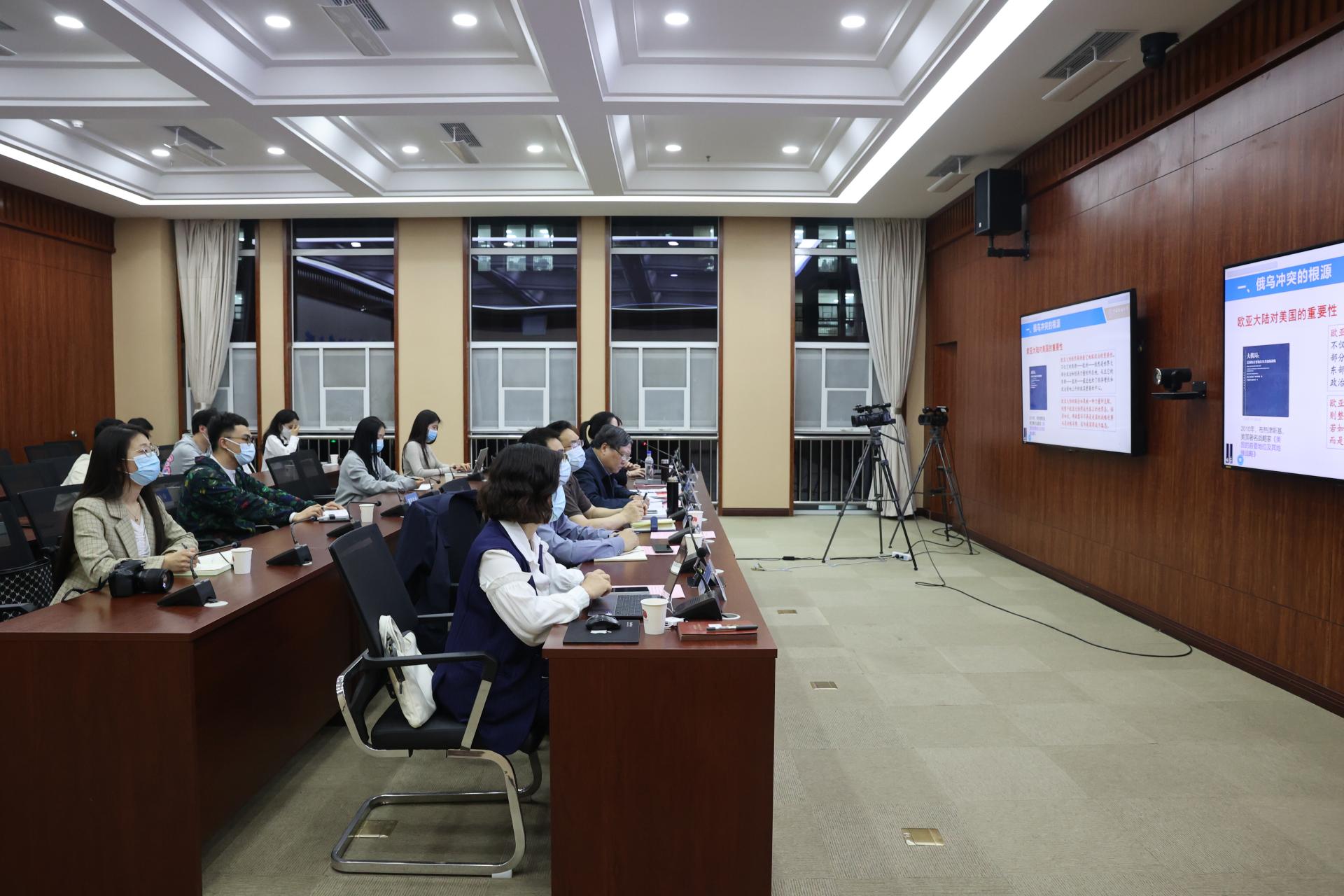 郭关玉从俄乌冲突的根源、俄乌冲突的影响以及中国应如何应对三个方面进行阐述。她通过梳理时间线,从历史渊源、地缘战略、政治策略等方面追根溯源,厘清俄乌冲突的由来,结合热点,探寻俄乌冲突的本质。她立足经济、政治、文化、军事等不同维度,分析俄乌冲突对俄罗斯、乌克兰、美国和中国的影响,着重介绍俄乌冲突为粮食、能源、核扩散及国际发展环境等方面带来的变化、为世界经济复苏增加新的不确定性。在谈到中国应如何面对俄乌冲突时,郭关玉指出,中国应继续坚持独立自主的外交原则,坚持统筹发展和安全,坚持总体国家安全观,坚决反对霸权主义和强权政治。她希望同学们保持理性态度看待俄乌冲突,从国家利益出发,与党中央保持一致,不断提高思想理论水平,练就维护国家安全和利益的本领。