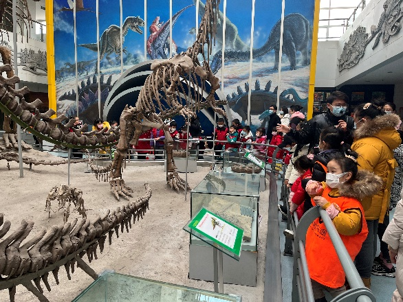 “夜晚的博物馆是什么样子呢?当太阳最后的光芒消失在地平线上,博物馆的一切真的会像好莱坞影片中《博物馆奇妙夜》一样活过来吗?假如恐龙醒来,是否会上演一场恐龙大战?”国家“双减”政策出台以来,博物馆全力打造课后科普服务体系。结合“我为群众办实事”活动,重点突出青少年科普活动趣味性、探索性、好奇性和创造性,开展“博物馆奇妙夜”等活动,通过地质科普亲子游、拼化石、做拓片,实现与恐龙做“邻居”,孩子们在这一晚不仅能够获得超值的体验,还能收获课本上没有的地学知识,仅2021年下半年,就吸引了700余名小朋友及家长报名参与。