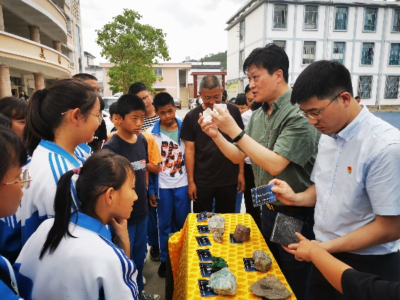 为巩固国家脱贫攻坚成果、服务乡村振兴战略,2020年10月17日,博物馆走进竹山县茂华中学,为1300余名师生上科普课,布置“美丽多姿的矿物”科普展板,以及化石、矿物标本展台,并向该校捐赠矿物标本和科普图书,为中学生们奉献了一场地学科普盛宴;2021年5月31日,博物馆走进学校定点帮扶县——云南省施甸县,通过开展科普讲座、地质标本与科普图书捐赠、爱心捐助、联合支部主题党日、采集地质标本等活动,与施甸第二完全中学开展支部结对共建,助力施甸县教育教学、科技创新等迈上新台阶。据悉,博物馆积极与全国各地有需求的学校、乡村建立合作关系,先后在全国多所中小学开展科普服务,增强学生脱贫意识。