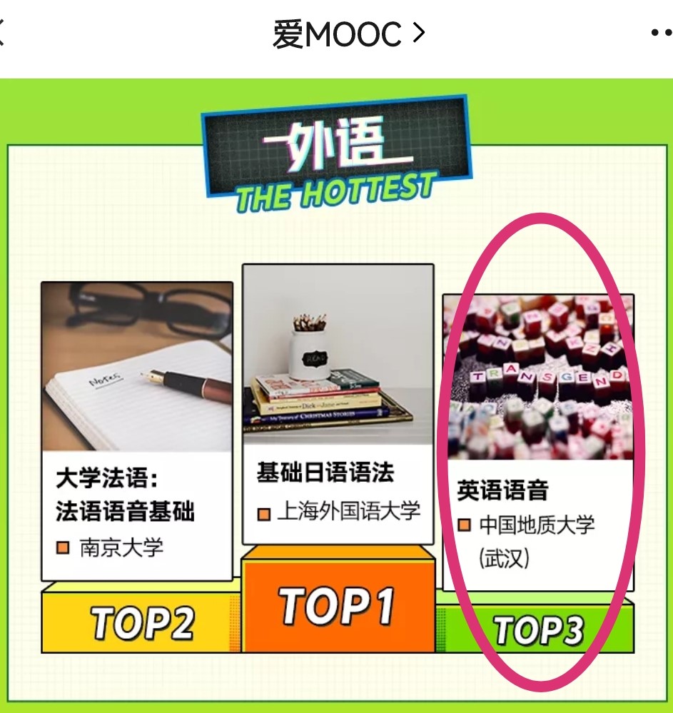地大新闻网讯(通讯员 龚伍军)1月17日,中国大学MOOC网(爱课程网)发布2021年度课程榜单,米兰王国念老师主持的《英语语音》慕课在外语学科中喜提“探花”。