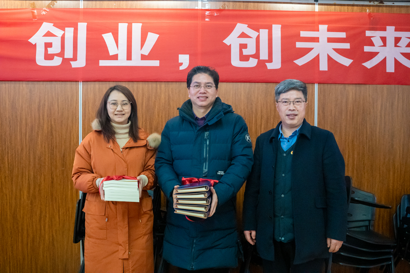 王华为参训的创新创业导师代表送上书本等慰问品