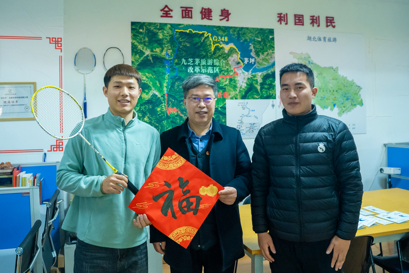 王华向学生创业团队代表送上新年“福”字